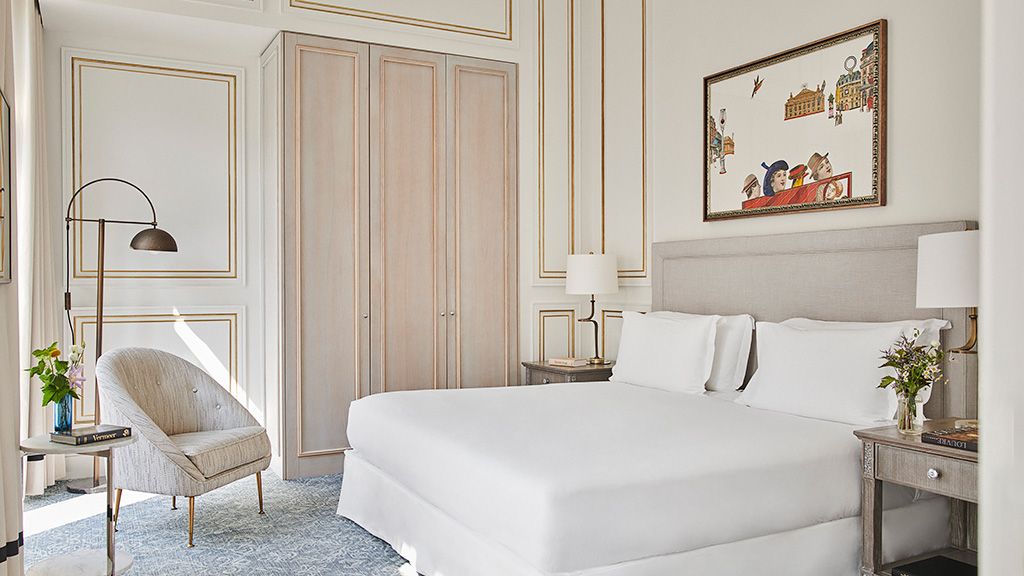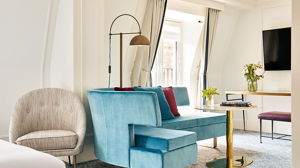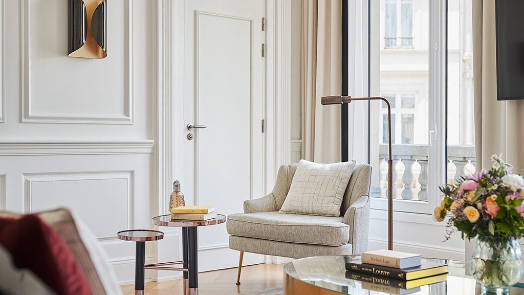 These elegant 35-square-meter (375 sq.ft.) junior suites feature a generous king-bed room leading to a large seating area with sofa. The perfect place to unwind in the heart of Paris.