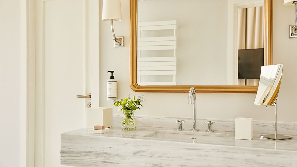 Designed as a single seamless space, these 50-square-meter (540 sq ft) Suites feature a cozy bedroom, a living room and a bathoom with a tub or shower. Bathed in natural sunlight and located at the corners of the hotel, they offer outstanding views over the Louvre museum and the Palais-Royal.