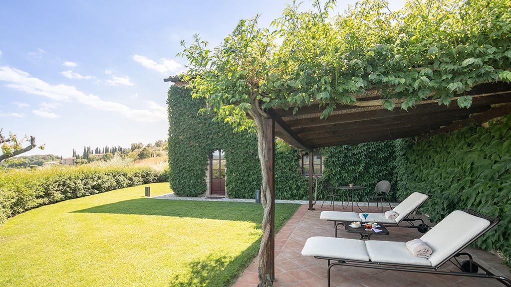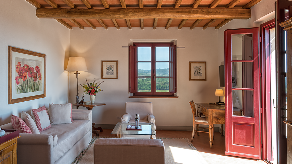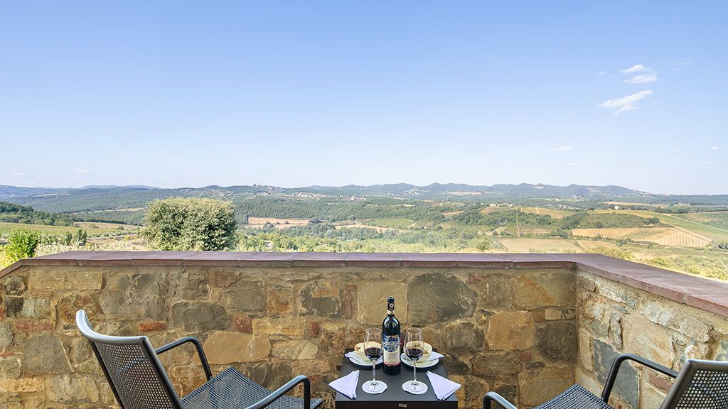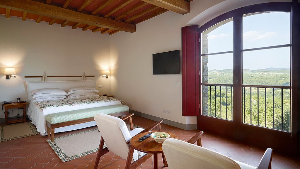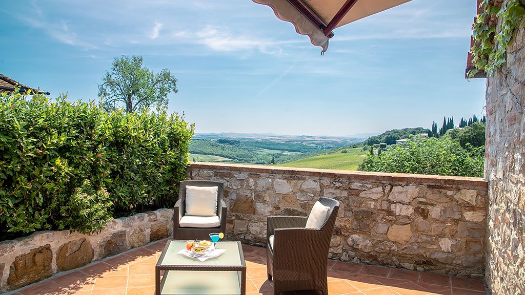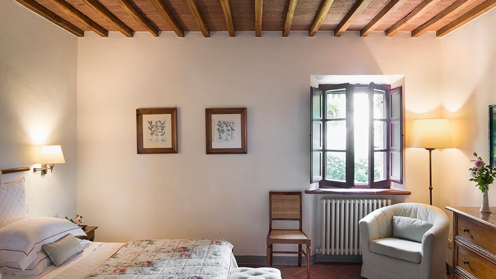 Catch a glimpse of the rolling Chianti Hills from Hotel Le Fontanelle, a boutique hotel 20 minutes away from Siena, in Tuscany, Italy.