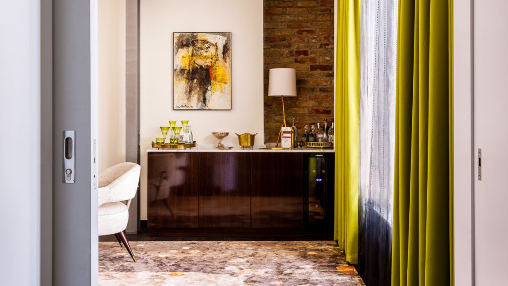 There’s an instant Hollywood feel upon arrival at Hotel Zoo Berlin, with guests reaching reception by walking a long jade-green carpet woven with images of leopards. The magic doesn’t stop there, the lobby showcases soaring 22-foot ceilings and a glassed-in fireplace, which is beautifully placed below an immense chandelier.