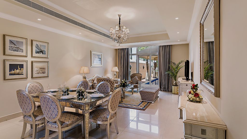 Behind a palatial exterior, Kempinski Hotel & Residences Palm Jumeirah is home to 244 suites, penthouses, and villas. These opulent hideaways offer all the comforts of home, with private living rooms, dining areas and fully equipped kitchenettes. Beautiful marble flooring and panoramic views of the Arabian Gulf frame these delightfully appointed spaces, which feature all the modern conveniences one would expect.