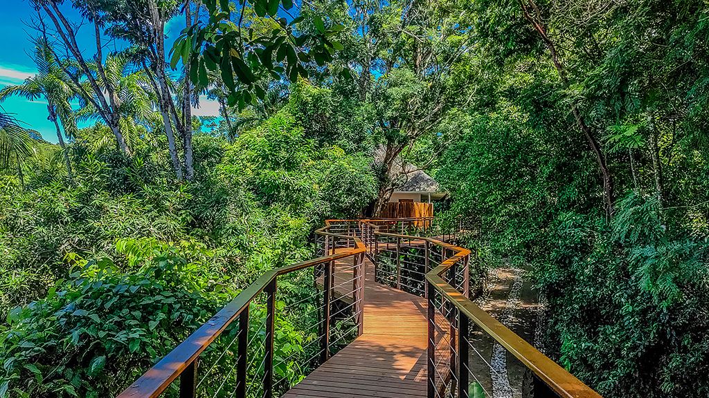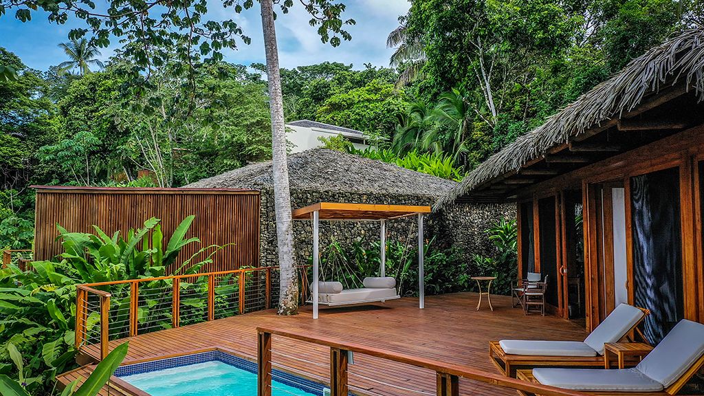 There are only 17 bungalows at Lapa Rios Lodge, so you're more likely to see monkeys at the pool than a crowd of people. You'll rest on hand-made bamboo furniture, beneath a palm-thatched roof. And your private verandah? The perfect place to enjoy an organic coffee and ocean view.