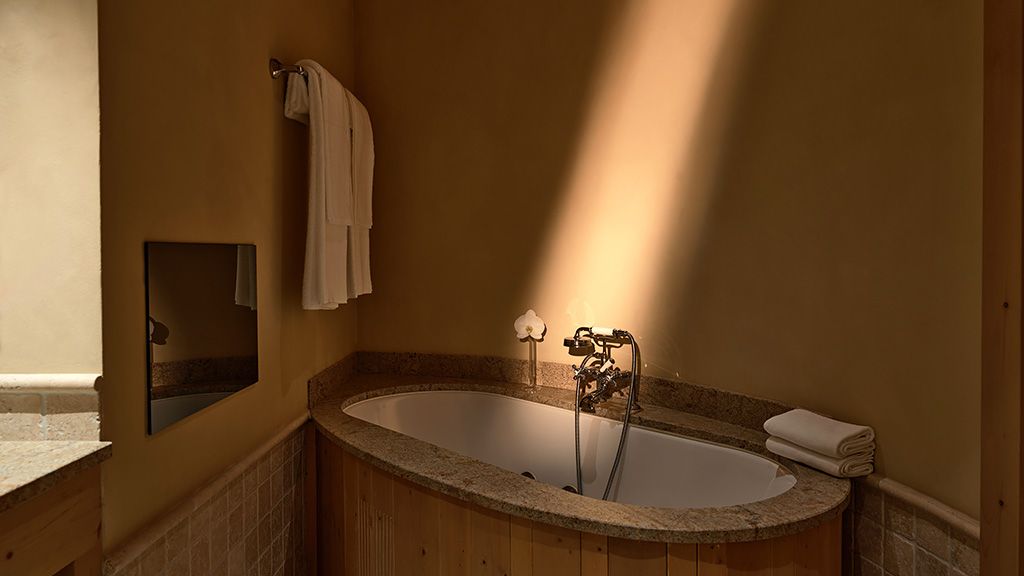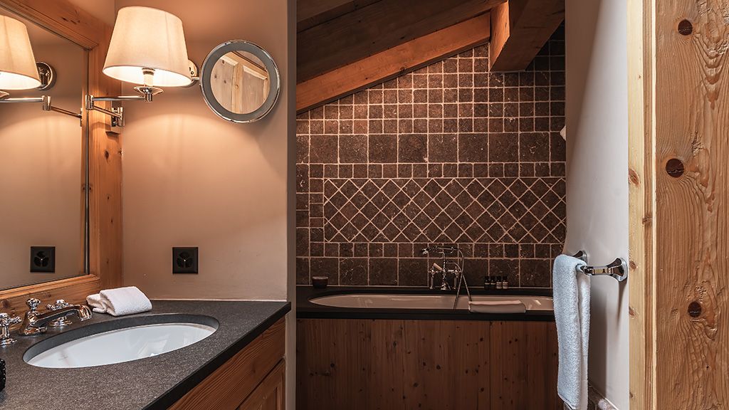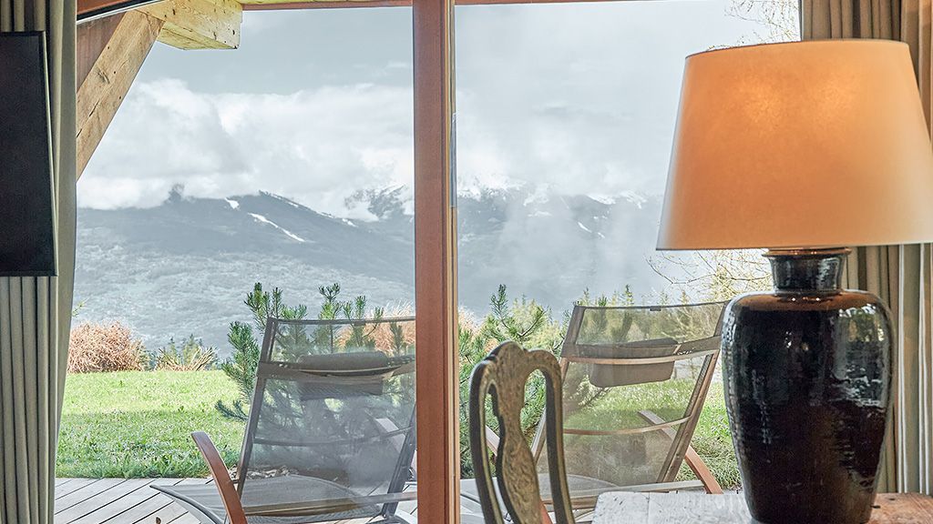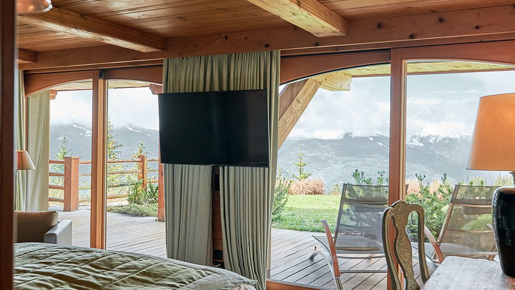From 45m2 to 60m2. King size bed, fireplace, desk, Nespresso machine. Bathroom with shower and jacuzzi bathtube with plasma TV. Terrace. Full Mountain view.