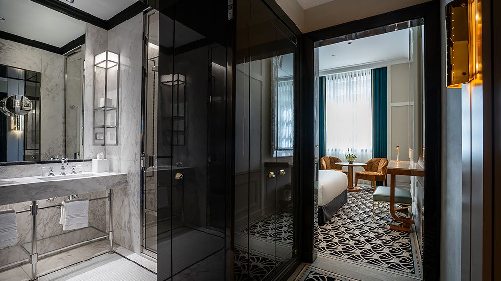 Light-filled and elegant executive room with a city view, 29 m² with spacious bathroom, fitted out entirely in marble. Avenue view.