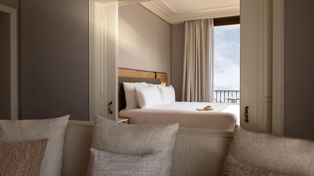 Embrace the perfect blend of contemporary design and coastal tranquility in our sea view junior suite. With up to 46 sqm of thoughtfully designed space, this suite offers expansive city and sea views that create an inviting, serene atmosphere. The minimalist aesthetic and natural light enhance the relaxed feel of the room, making it the ideal retreat after a day spent exploring barcelona. The suite features a spacious king-size bed, a cozy lounge area, and a carefully curated maxi bar corner with premium selections. Clean lines, soft neutral tones, and modern furnishings come together to create a stylish yet laid-back environment, where you can unwind in comfort.
