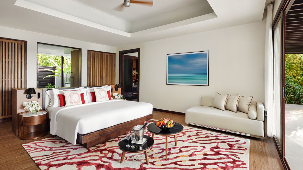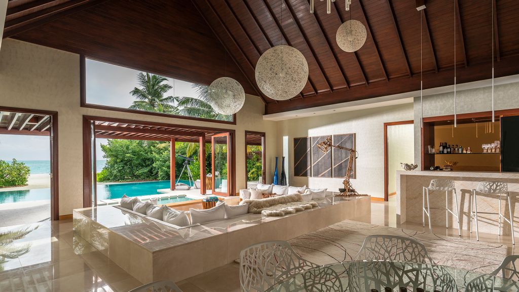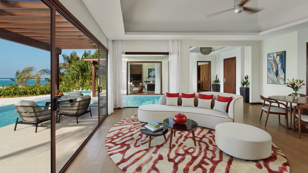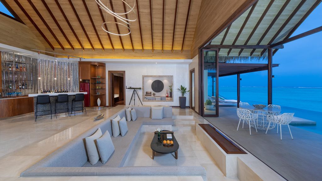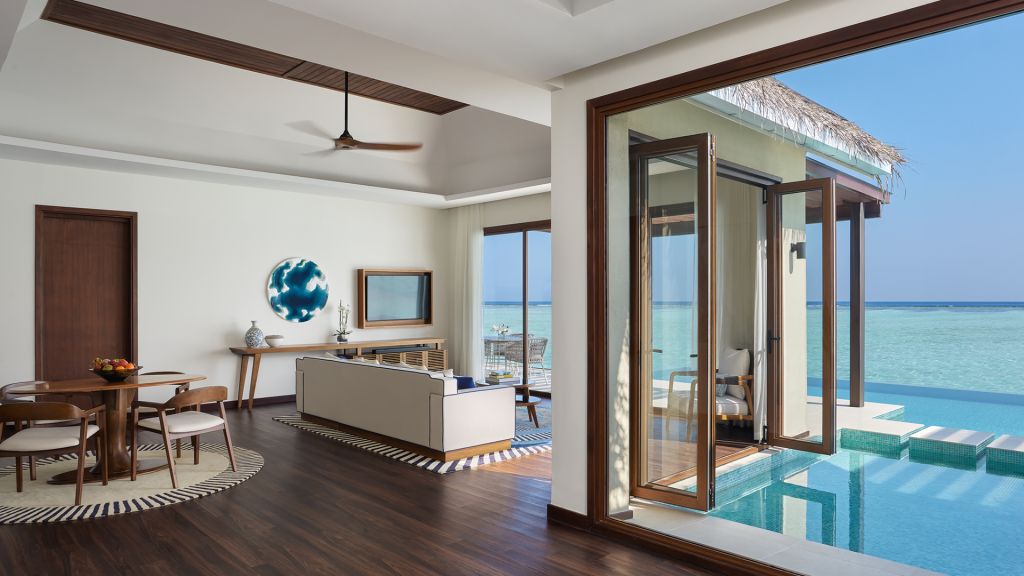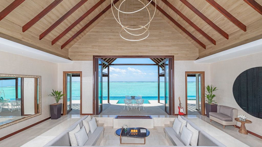 The accommodations here are designed to balance space, privacy, and effortless connection to the sea. Each villa or pavilion integrates indoor and outdoor living, often with private decks or pools that let the lagoon or beach feel just steps away. Interiors are thoughtfully appointed, with contemporary comforts such as Bose sound systems, Nespresso machines, in-villa dining options, and personalized service from dedicated villa hosts. Generous layouts and seamless transitions between living, dining, and outdoor areas make the spaces flexible for couples, families, or groups. Elevated pavilions and overwater retreats offer direct water access from your deck, creating a sense of intimacy with the surrounding ocean.