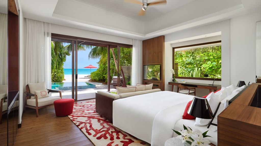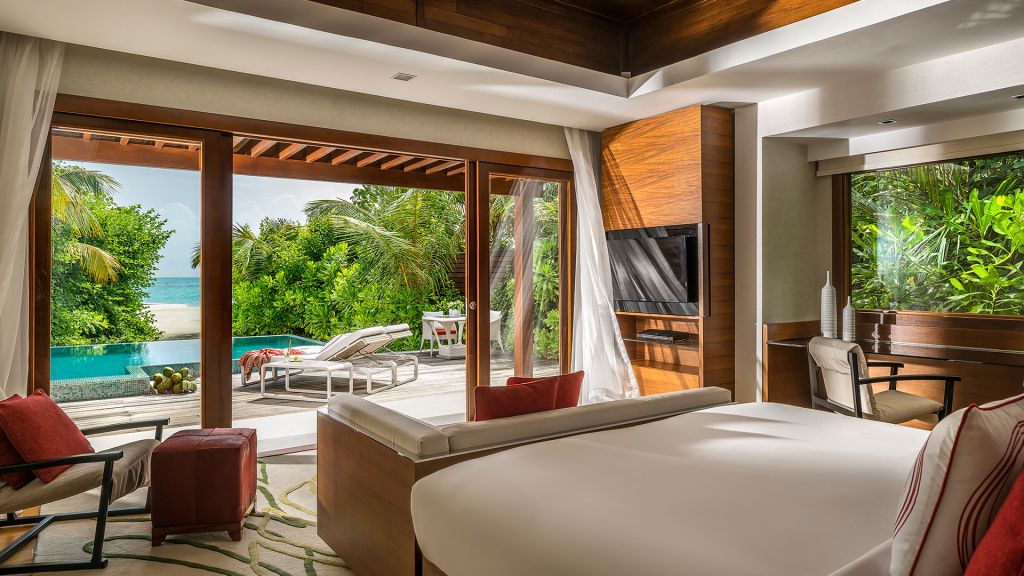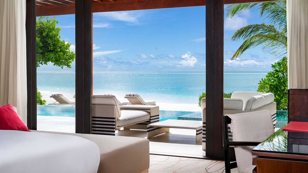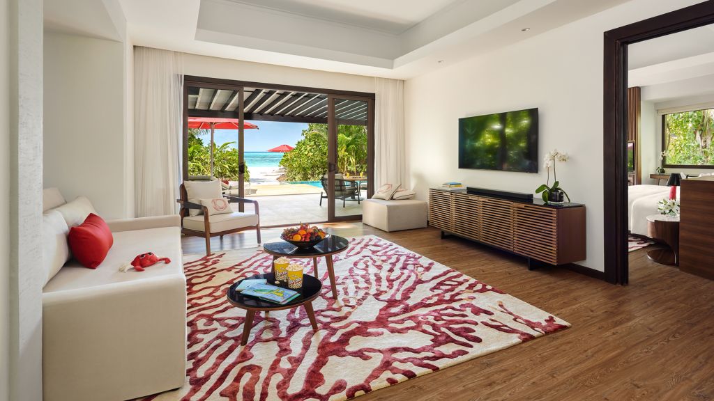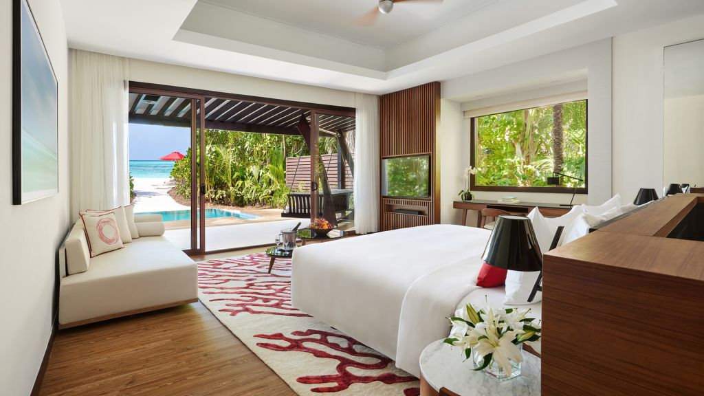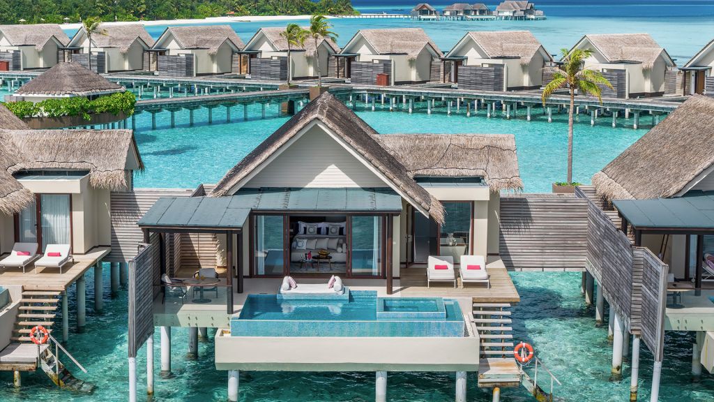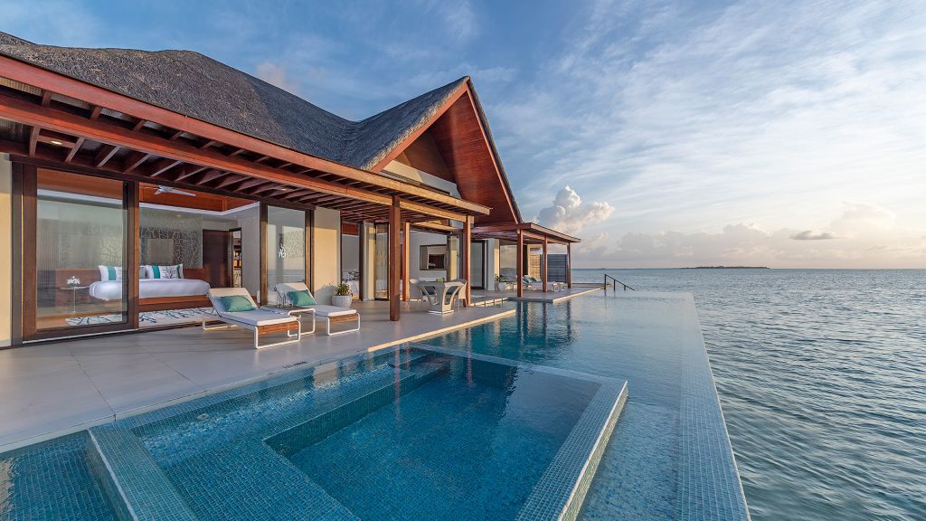 The accommodations here are designed to balance space, privacy, and effortless connection to the sea. Each villa or pavilion integrates indoor and outdoor living, often with private decks or pools that let the lagoon or beach feel just steps away. Interiors are thoughtfully appointed, with contemporary comforts such as Bose sound systems, Nespresso machines, in-villa dining options, and personalized service from dedicated villa hosts. Generous layouts and seamless transitions between living, dining, and outdoor areas make the spaces flexible for couples, families, or groups. Elevated pavilions and overwater retreats offer direct water access from your deck, creating a sense of intimacy with the surrounding ocean.