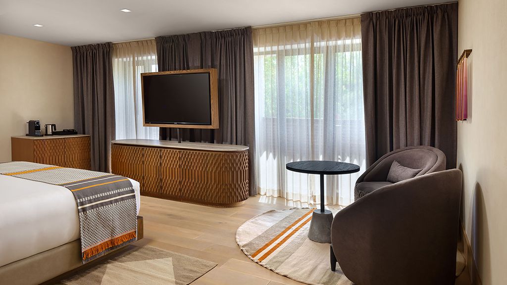 Spanning 441 square feet our guest room features one king bed, a sitting area, spacious bathroom with a rain shower, and a private terrace overlooking the hotel’s garden, or a balcony with surrounding area views.