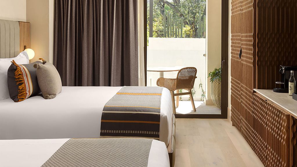 Enjoy a private terrace with views of the garden when you stay in our 409-square-foot room complete with two queen beds and harmonic décor that lets you experience San Miguel de Allende from dawn to dusk.