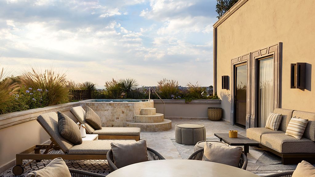 Discover why San Miguel de Allende has become a world heritage jewel and enjoy our outstanding 1,464-square-foot suite. Sunbathe on its private terrace, relax in a hot tub with hydromassage, or enjoy a romantic candlelight dinner. The one-of-a-kind suite features one king bed, a living room, spacious bathroom, rain shower, freestanding oval tub, and unparalleled service as you experience an unforgettable journey.