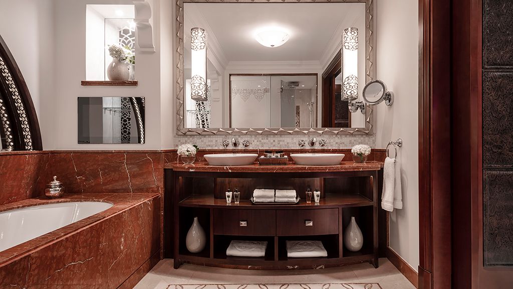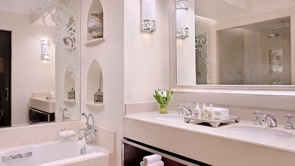 The Royal Mirage comprises three distinct properties: The Palace, Residence & Spa, and Arabian Court. Rooms here are spacious, starting at 45 sq. met. and ranging up to over 325 sq. met., and decorated with glossy wood furnishing and crisp linens.