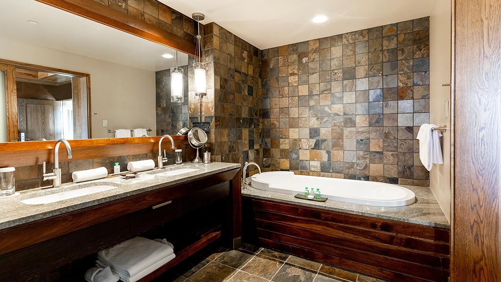 Located in the lodge and boasting some of the property’s finest views, the lodge balcony suites feature separate living and dining areas showcase the same smoky palette as the bedroom, with wood and stone touches referencing the mountains all around. The master bathroom features imported european glass mosaic tiles and the clean lines of dornbracht fittings, and some suites feature a separate powder room. Down duvets, plush robes and slippers, bvlgari bath products, and custom-designed frette sheets satisfy the senses on every level.