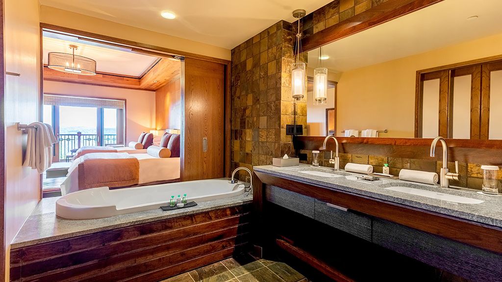Able to accommodate two guests, a fairway king offers a roomy studio layout with a bedroom with a king-size bed, a spacious bathroom, and a simple galley kitchen. Savour custom-designed 400-thread count frette linen and down duvets, along with luxurious customized bath products. Also enjoy access to a private putting green.