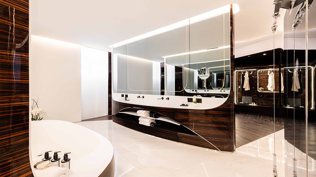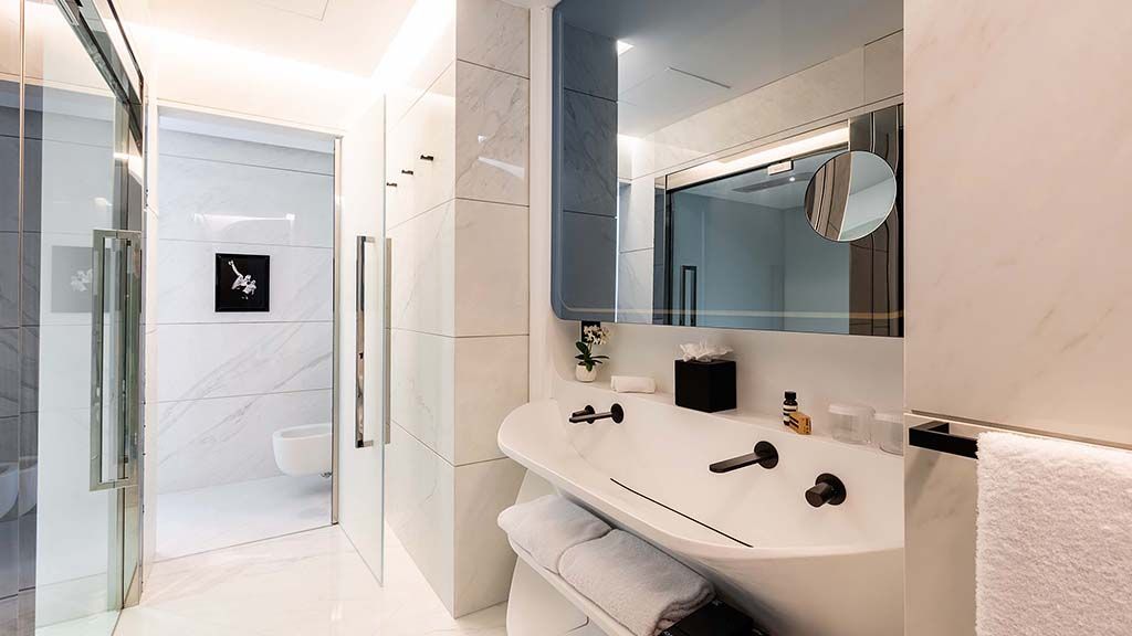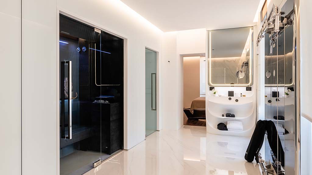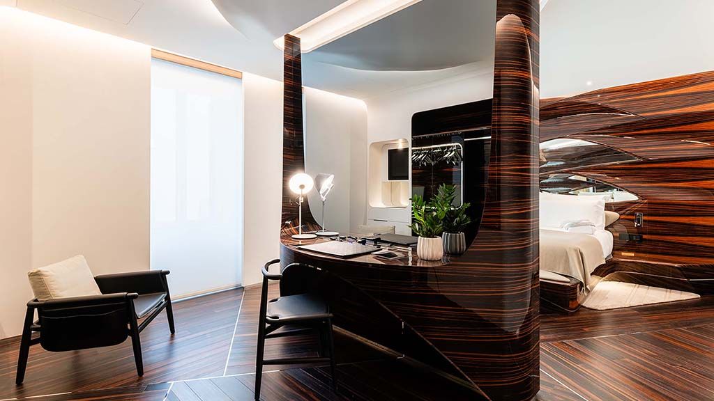 Hadid’s fingerprints are most noticeable across ROMEO Roma’s 74 guest accommodations. These lavishly crafted spaces come clad in the finest Italian marble, with bespoke furnishings, cozy lighting, and a generous helping of modern conveniences. Some of the Suites are even home to original 16th-century frescos, creating a stunning juxtaposition between old and new.