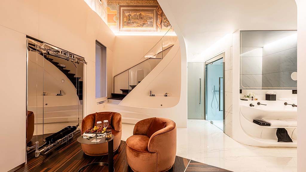 It’s easy to fall in love with the enchanting ROMEO Roma, a centrally-located boutique hotel that marries the historical wonder of a 16th-century palace with the thrilling design of Zaha Hadid.