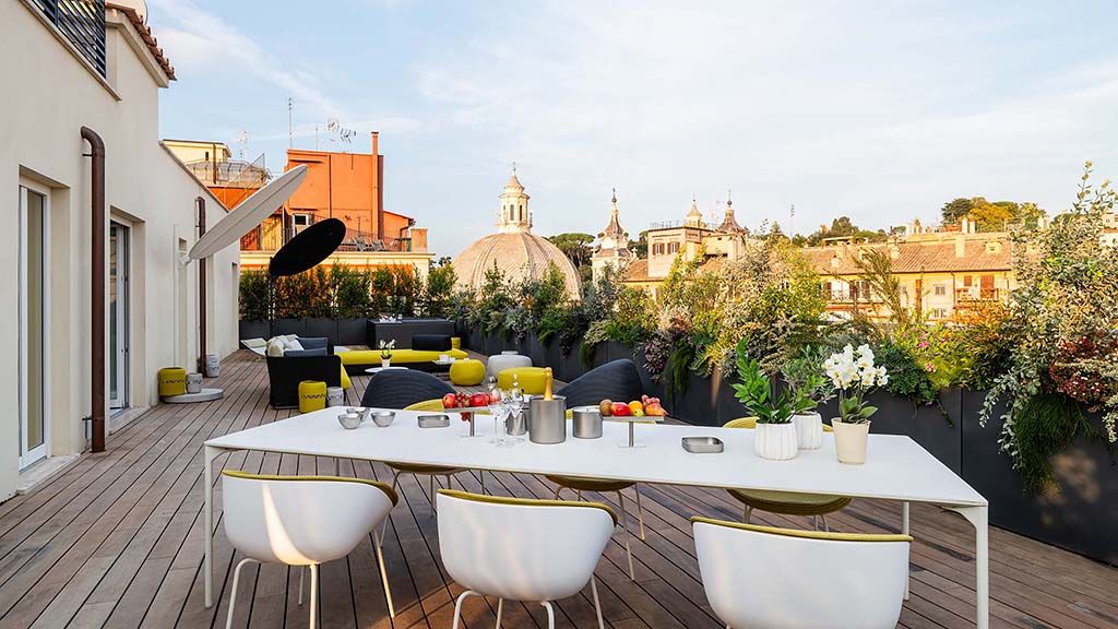 - Rooftop Terrace—enjoy Rome city views and sunsets with Krug Champagne in hand