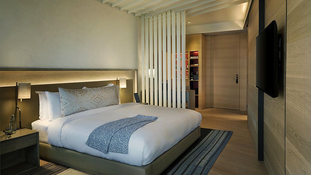 Set on a hill away from the main building, the room’s soft-hued contempo... Read More