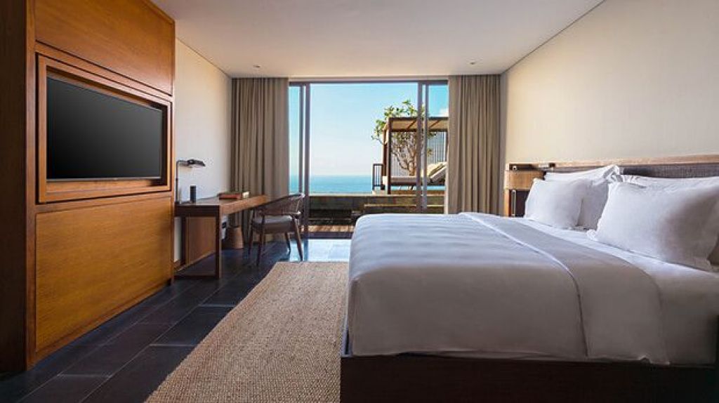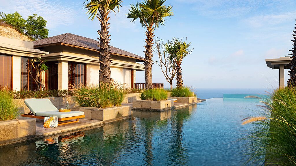 The cliff-top one-bedroom villa is inspired by Balinese architecture. A small temple at the entrance welcomes you to your home in the resort. The villa features a 228 sq.ft. (21 sq.m.) outdoor pool with a spectacular views of the Indian Ocean. A large deck where you can feel the ocean breeze while sunbathing or while enjoying your favorite book and a day bed should you want to soak in the outdoors. Enjoy uninterrupted views of the ocean while you immerse yourself in your ocean-facing deep soak bathtub.