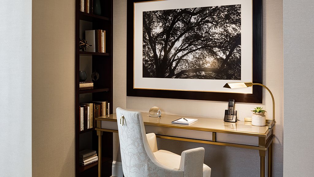 Offering 450 square feet of living space and a king bed, the deluxe accessible room features a wheelchair accessible entrance, sitting area and writing desk. Styled with waterworks fixtures, the bathroom has handlebars for toilet and a transfer shower with seat and handlebars. Defined by a soft, distinctive color palette and clean lines, this beautifully conceived room is appointed with custom furnishings featuring contemporary silhouettes and handsome metallic accents. Rich mahogany millwork, gorgeous damask wallcoverings and artfully curated book niches lend to the room’s timeless residential appeal. Note: the hotel’s guest corridors are equipped with audio-visual alarms and all elevators feature raised letters and braille signage. On floors 2-9, the guest room doors display raised letters and braille signage. View accessible features. At a glance size 450 ft² / 42 m² beds one king or two queens bathroom transfer shower with seat and handlebars extra bed one rollaway view city location floor 2 • wheelchair accessible door • handlebars for toilet and shower • transfer shower with seat and hand-held shower handle • wheelchair accessible sink vanity • lowered door peephole, light and air conditioning controls • visual alarms on request • visual notification devices on request • tdd phones on request