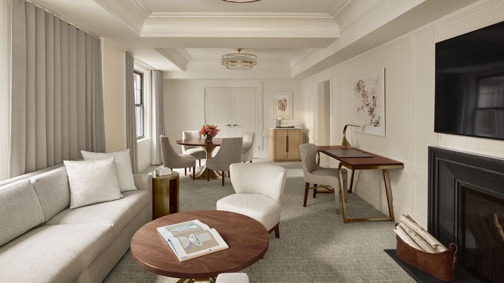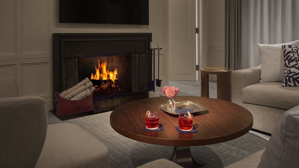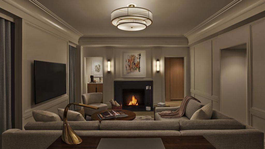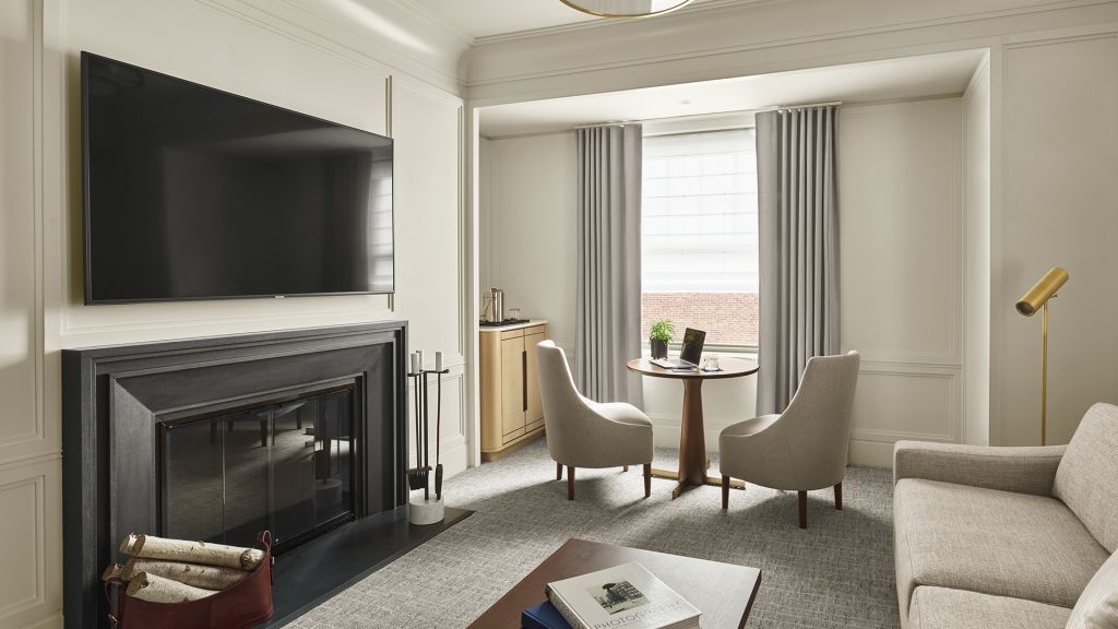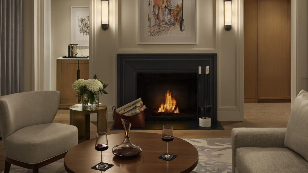 Classic fireplace suite 578-783sq ft-king-fireplace-roll-in shower city views and separate living and sleeping areas library and gym access - preferred seating at the street bar