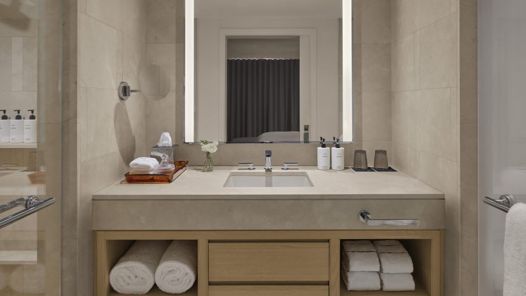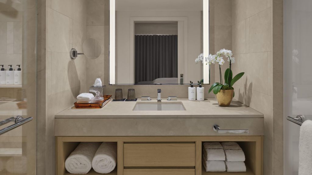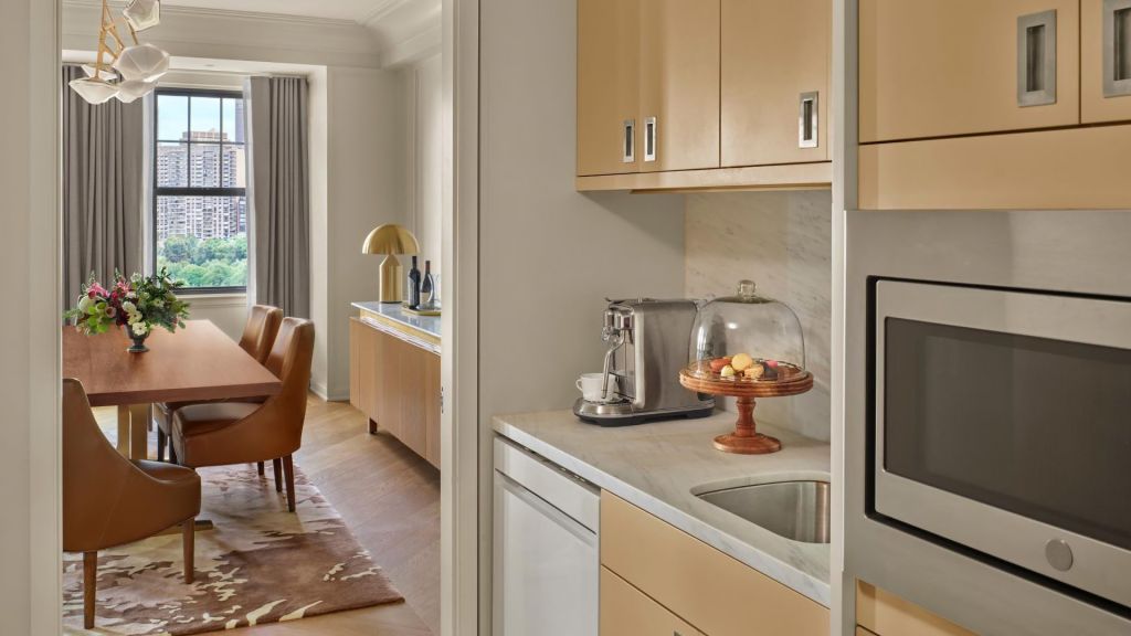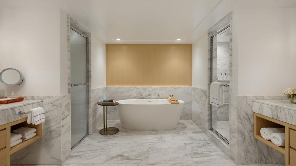 While there’s no spa on site, wellbeing remains within easy reach. A state-of-the-art Fitness Center equipped with Life Fitness, Peloton bikes, TRX trainers, and free weights lets you sustain your routine without leaving the building. For more traditional spa treatments, a number of nearby wellness destinations are readily accessible.
