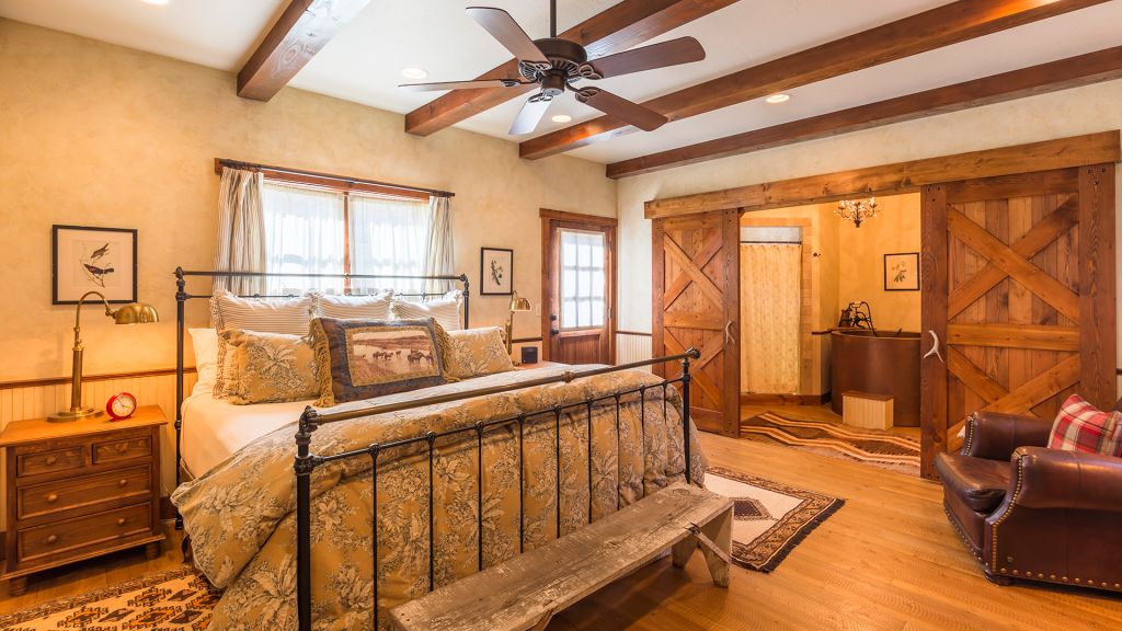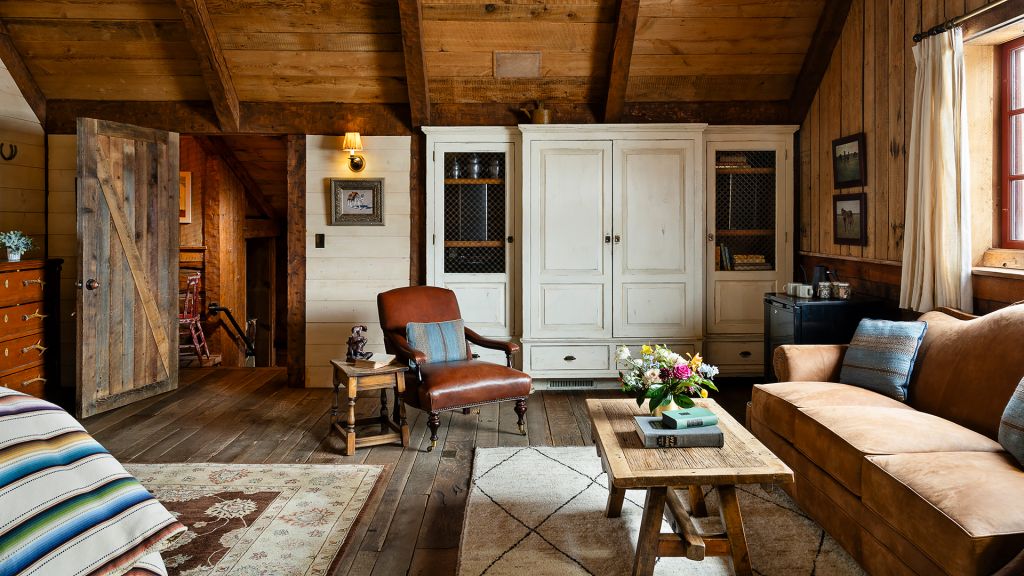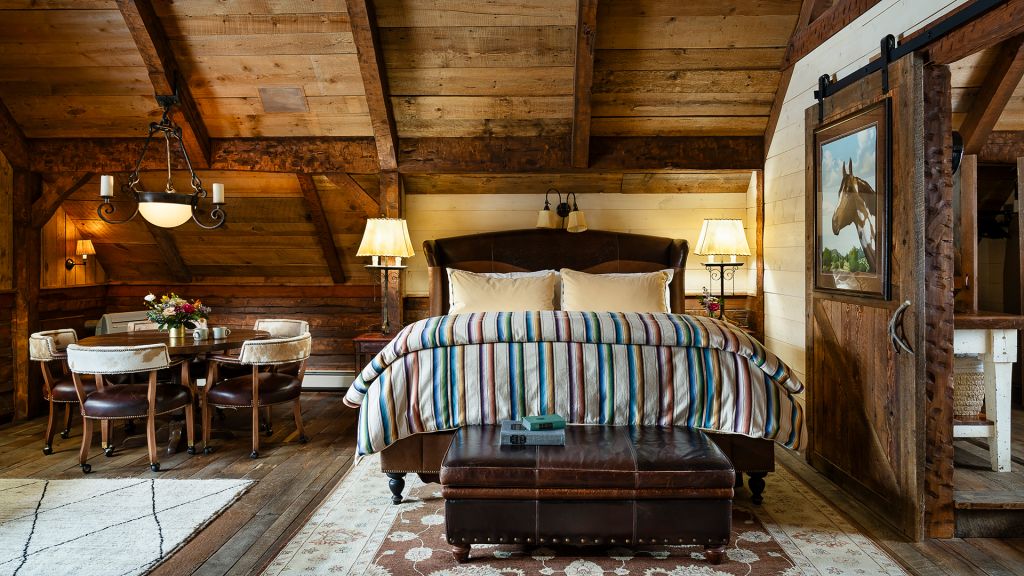 1 king bed - 1 queen pull-out sofa – 65sqm / 700sqft – sitting area – shared porch – located in hay loft of the historic barn – elevated en-suite bathroom with clawfoot bathtub and separate rainfall shower – double vanity – hairdryer – bathrobes – slippers – montana amenities – separate toilets with washbasin – complimentary wi-fi – television – stereo system – telephone – gaming table – mini fridge – safe deposit box – adjoining accommodation with wrangler or stables possible – 1 extra bed possible – 4 persons maximum