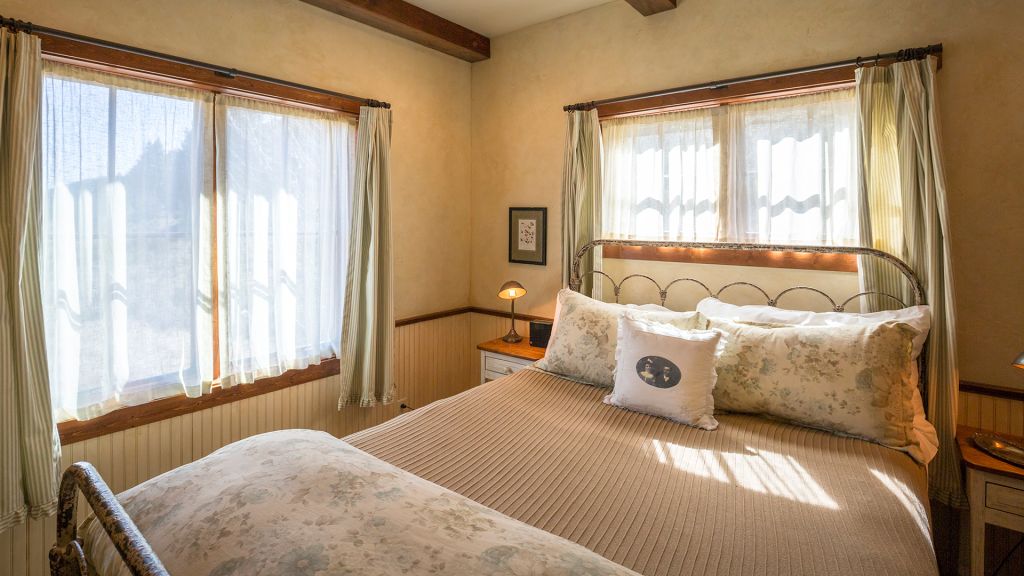 2 bedrooms - 2 king beds - 1 twin day bed - 1 twin trundle bed – 133sqm / 1432sqft – separate sitting room with fireplace – dining table – kitchenette – porch – back yard deck with access to both bedrooms – overlooks the valley and its hillsides – 2 en-suite bathrooms both with clawfoot bathtub and separate shower – hairdryer – bathrobes – slippers – montana amenities – complimentary wi-fi – television – telephone – minibar – safe deposit box – 2 extra beds possible – 6 persons maximum