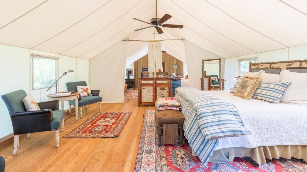 The Granite Lodge offers nine rooms, each decorated in a unique yet distinctly Western style. The Historic Barn (dating back to the late 1800’s) has been restored to three accommodations which can be booked individually or in concert for larger families. For a more immersive experience, guests may opt for one of our ten glamping tents. And finally, The Ranch at Rock Creek’s nine Luxury Log Cabin Homes range from one to five bedrooms, providing guests with the ultimate home-away-from-home experience.
