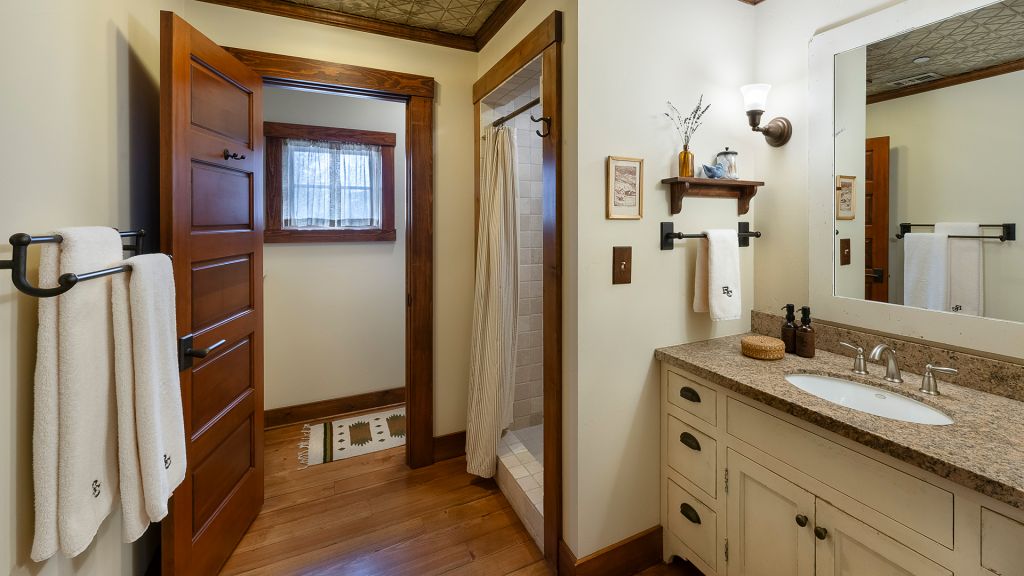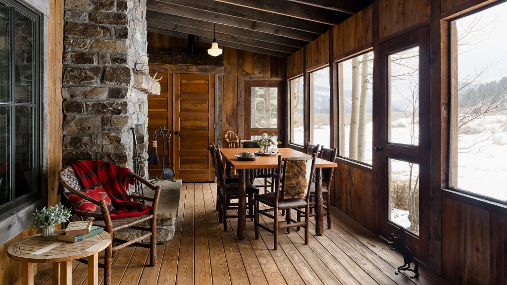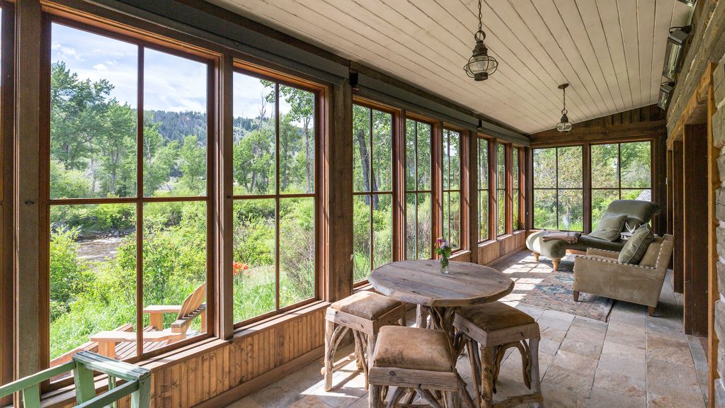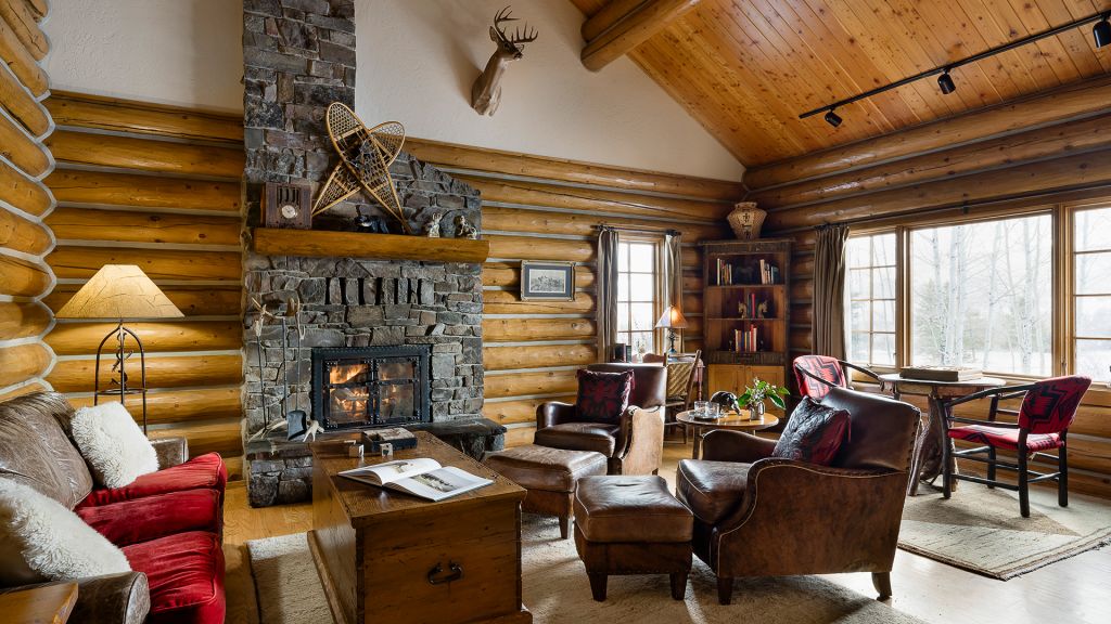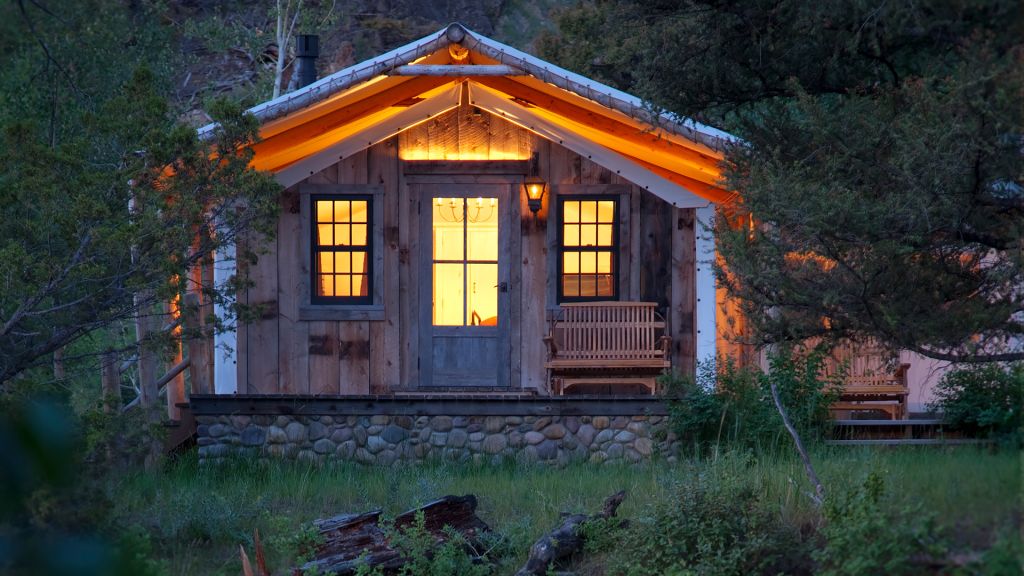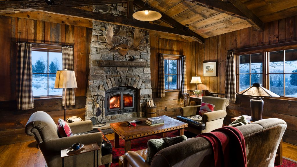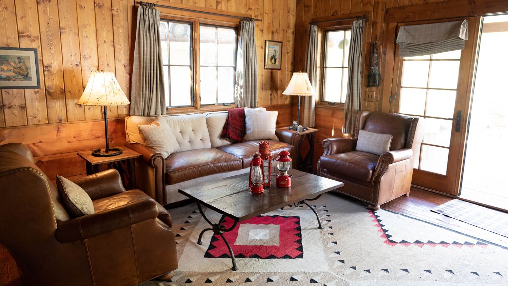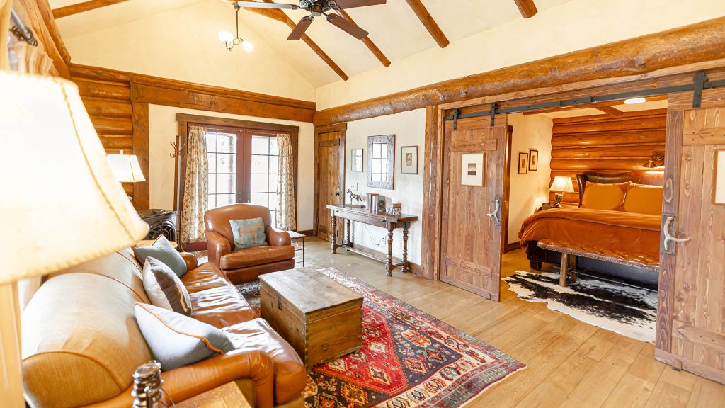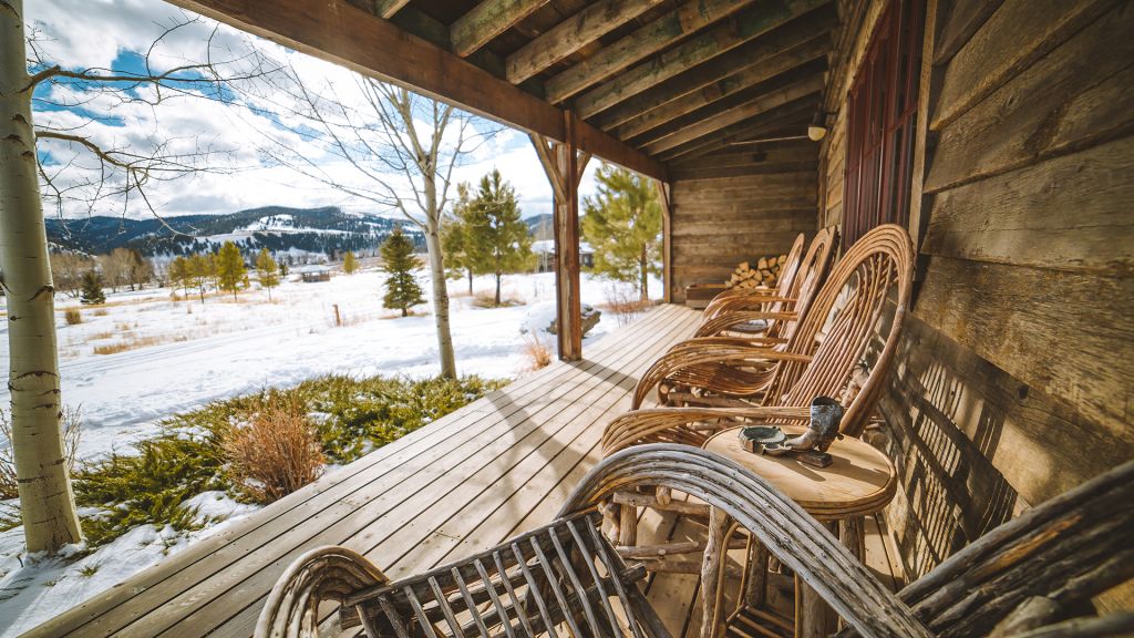 1 king bed & 1 queen pull-out sofa or 2 queen beds - 59sqm / 630sqft – sitting area with gas burning stove – dining table – screened in porch and a deck facing the creek – spacious bedroom featuring luxurious bedding – western textiles and antique furniture – rustic camp style – view of rock creek – en-suite bathroom with a shower over bath – hairdryer – bathrobes – slippers – montana amenities – complimentary wi-fi – telephone – mini fridge – safe deposit box – 4 persons maximum