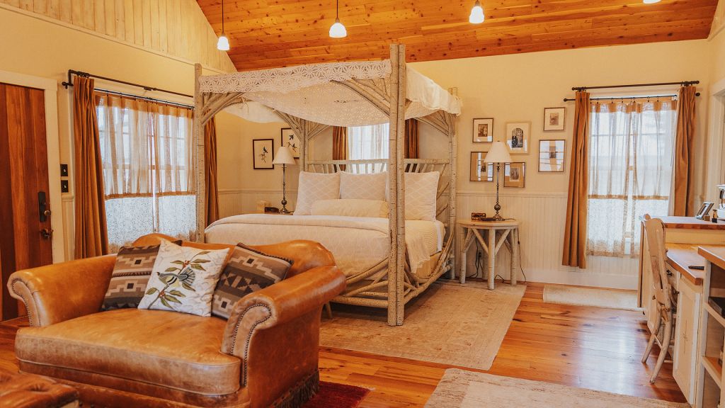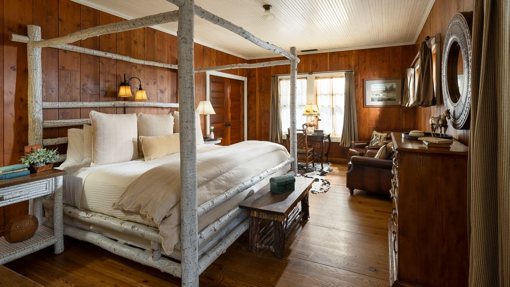 Montana offers a varied terrain, with outdoor sporting opportunities as rich as the land itself. It also offers The Ranch at Rock Creek, a rugged-yet-refined lodge in the heart of the valley. This timber and granite throwback is beyond charming: Tree branches have been re-purposed as bed frames and chairs, leather is stretched and softened into cushion covers, and soft, natural wool and cotton bedspreads await adventure-weary ranchers come days' end.