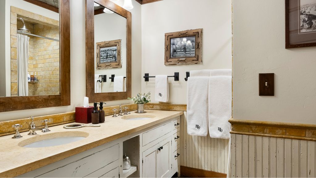 4 bedrooms – 2 bedrooms with king beds in each – 3rd bedroom with 2 queen beds – 4th bedroom with 1 king and twin daybed or 2 twin beds and daybed – 314sqm / 3375sqft – separate sitting room with wood-burning fireplace – dining room – kitchen – laundry room – outdoor deck – this luxury cabin features a private hot tub to sink into after a day of grand adventure – overlooks rock creek and the granite lodge – quiet, yet still close to the hub of the ranch – 3 ½ bathrooms – private en-suite includes stand up shower and slipper tub and double vanity – 2nd en-suite bathroom with shower over bath – upper level bathroom has a shower over bath and half bath located on the lower level – hairdryers – bathrobes – slippers – red flower bath amenities – complimentary wi-fi – satellite tv – telephone – minibar – safe deposit box – coffee / tea maker – 11 persons maximum