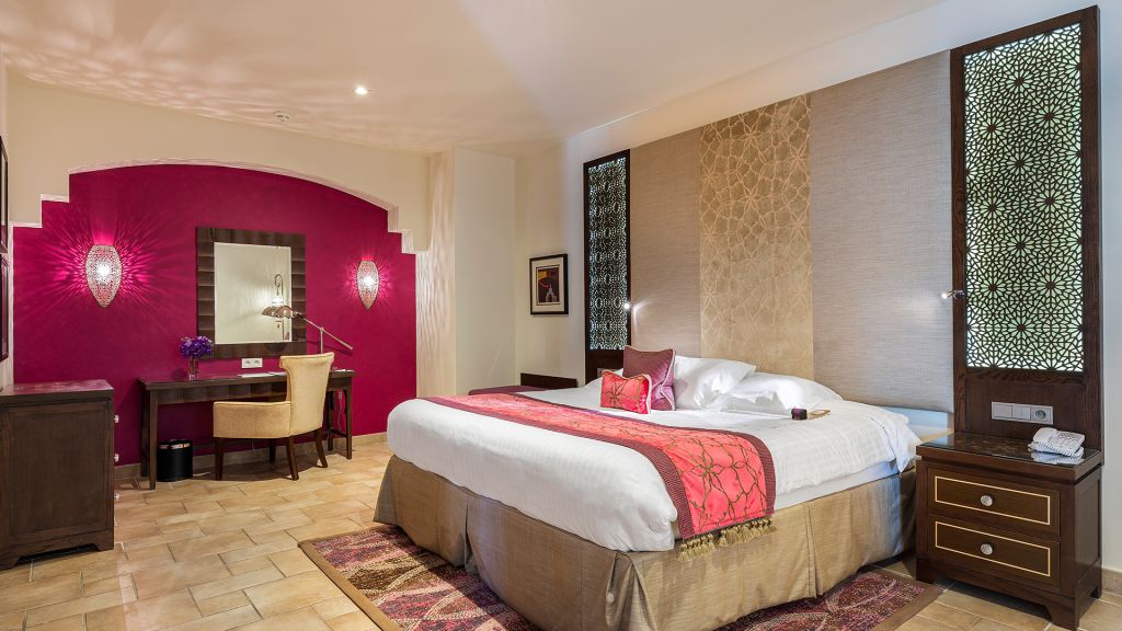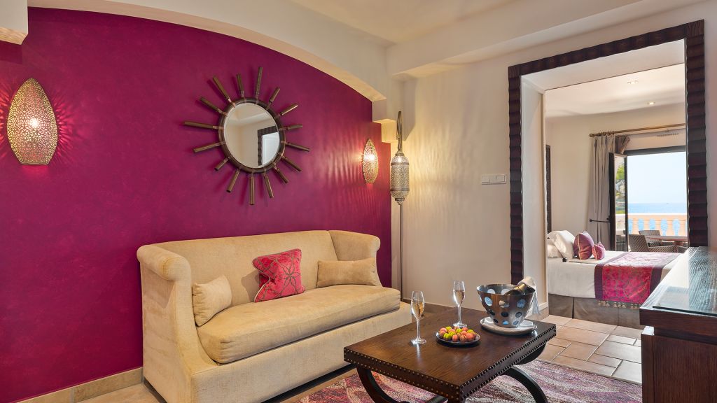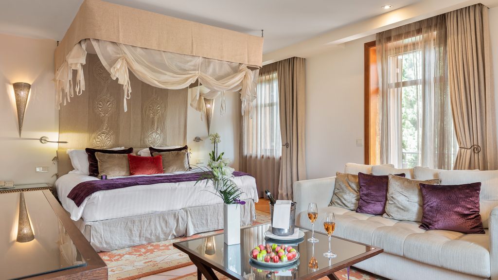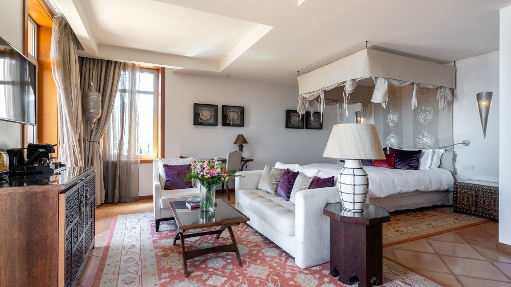 Located on the upper levels of the Resort, this 45 m² suite offers garden views and a balcony.