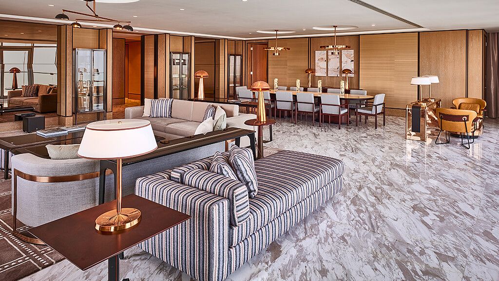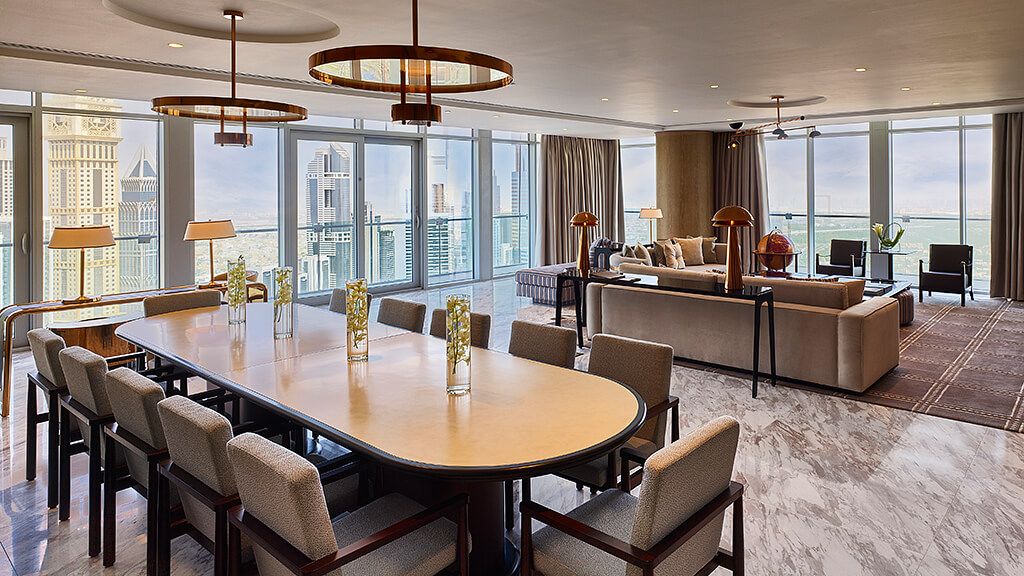 Suite with 180 degree Dubai view, living room, dining room, kitchen, pan... Read More
