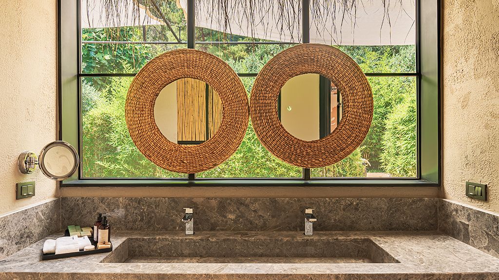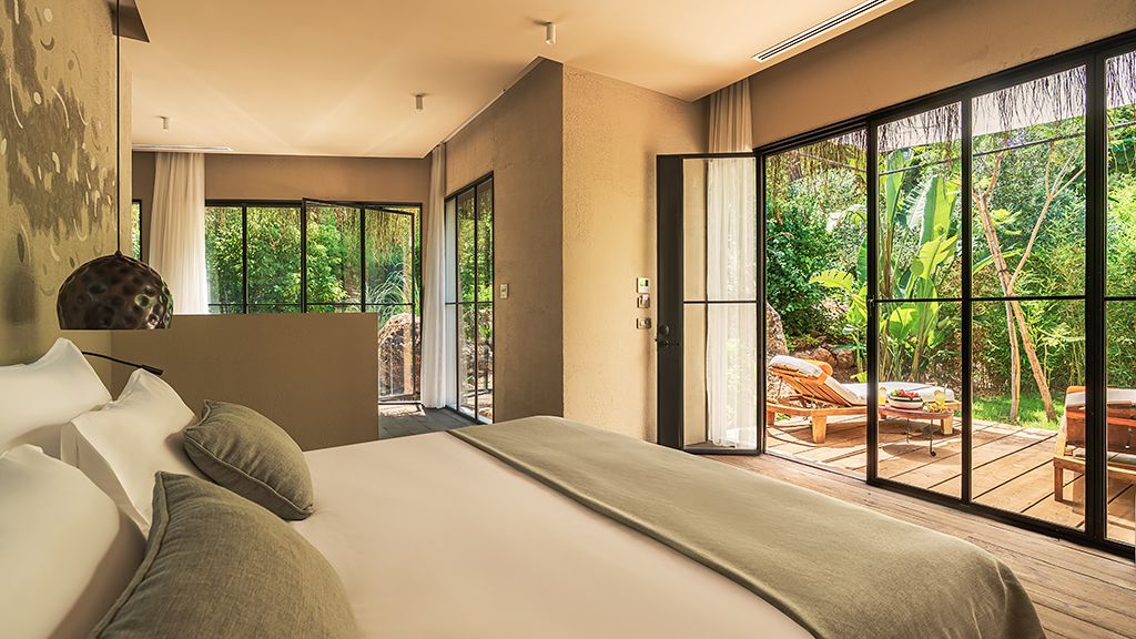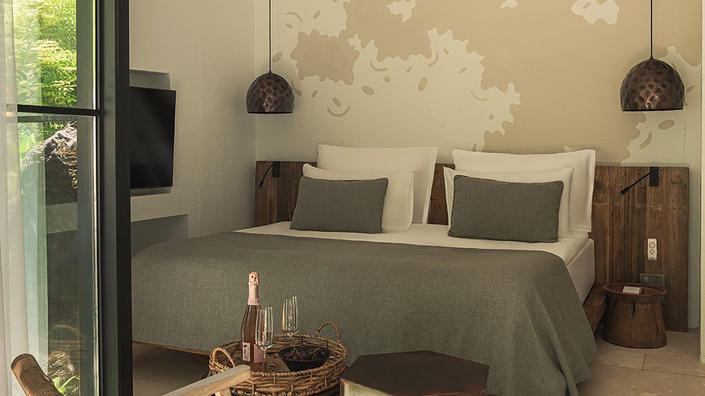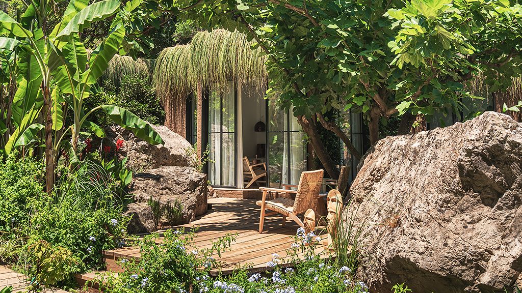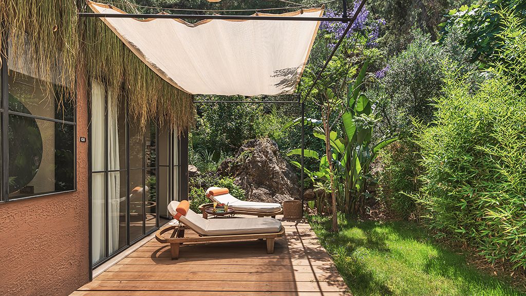 The hotel sits in a secluded cove on the Turkish Riviera that’s accessible only via boat. This hidden retreat artfully blends nature and luxury, with a low impact design philosophy that places the stunning natural scenery to the fore. This approach is apparent across the delightfully minimalist guest accommodations, each featuring a spacious deck that opens to the outdoors. Other comfy features include spacious king beds, dedicated dressing areas, air conditioning, yoga mats, and so much more.