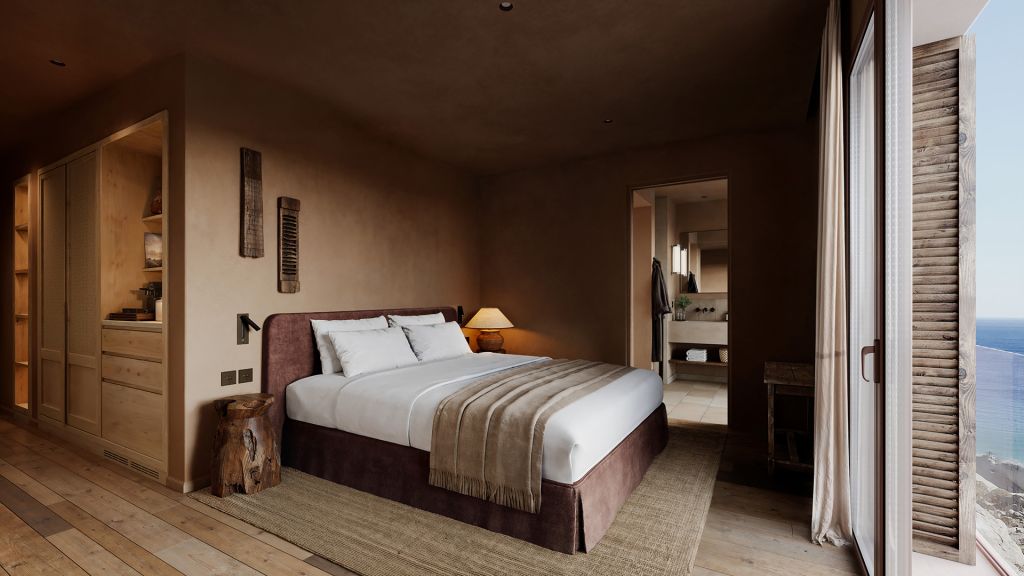Delos Suite with panoramic sea views, king bed and sofa bed. For 3 guests.