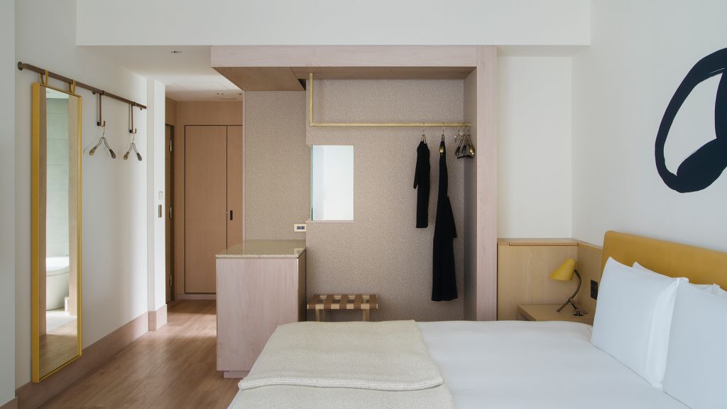 Corner Studio King and adjoining Studio room can be configured into a two-bedroom unit via an exterior door that can be secured to create one combined living space. With a modern look and a prime location, Corner Studios feature an abundance of natural light and added space in which to work and play. - 32sqm (345sqft) and 25sqm (270sqft) - 1 king bed each - Separate seating area - 49" 4K TV with Apple TV 4K - Rain shower - Separate soaking tub for Corner Studio - Hairdryer - Kettle - Complimentary instant coffee & tea - Complimentary mineral water - Slippers - Sleepwear (pajamas) - Safety box - Complimentary WiFi
