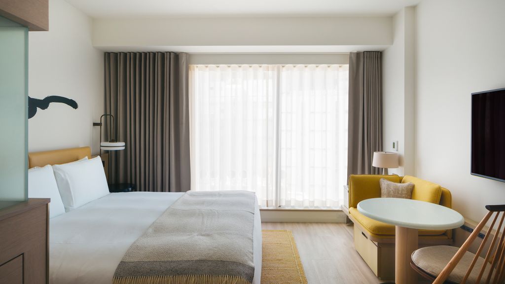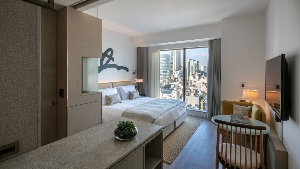 Contemporary in design and intuitive in functionality, Studios are ideal for travelers always on the move. - 25sqm (270sqft) - King bed - Separate seating area - 49" 4K TV with Apple TV 4K - Rain shower - Hairdryer - Kettle - Complimentary instant coffee & tea - Complimentary mineral water - Slippers - Sleepwear (pajamas) - Safety box - Complimentary WiFi As a nod to the destination, the look and feel of Studio rooms take inspiration from the modular presentation and intuitive functionality of Japanese bento boxes - complemented by locally commissioned artwork and bespoke furniture designed by Tara Bernerd & Partners. Rain showers make for especially refreshing mornings and relaxing evenings, while plush towels by Imabari add a luxurious feel. Walk-in shower only.