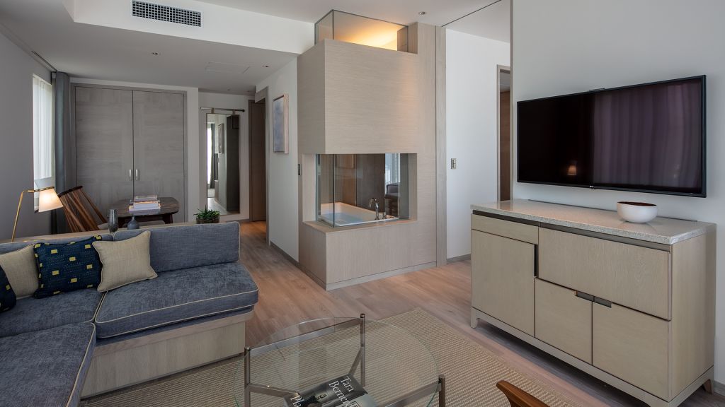 - 32sqm (345sqft) - 1 king bed - separate seating area - 49inch 4k tv with apple tv 4k - rain shower - separate soaking tub - hairdryer - kettle - complimentary instant coffee & tea - complimentary mineral water - slippers - sleepwear (pajamas) - safety box - complimentary wi-fi corner studios take inspiration from the marvellously functional design of japanese bento boxes - complemented by locally commissioned artwork and bespoke furniture designed by tara bernerd & partners. Replete with rain showers, deep soaking tubs and plush towels by imabari, these rooms present the perfect setting in which to seamlessly transition between resting and exploring.