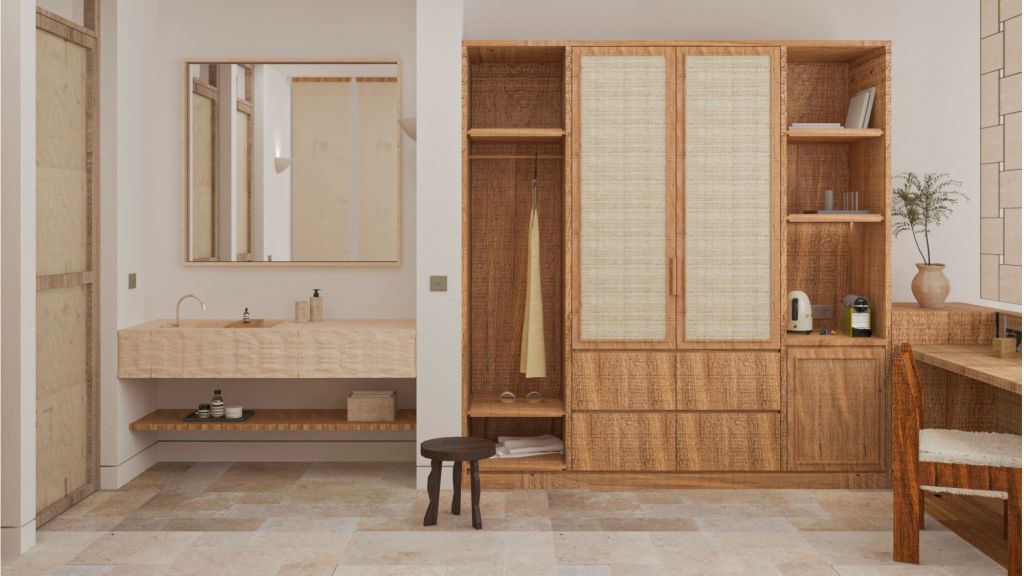 Situated in two beautifully crafted row-house-style buildings, these guest houses provide a unique blend of privacy and community, inspired by timeless architectural principles that harmonize with the natural landscape. Interior sqm 30