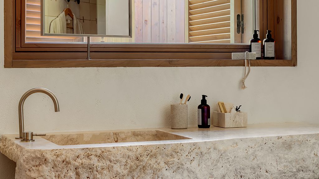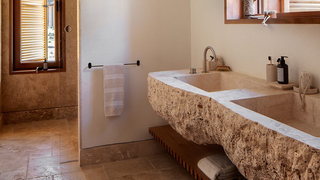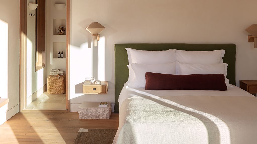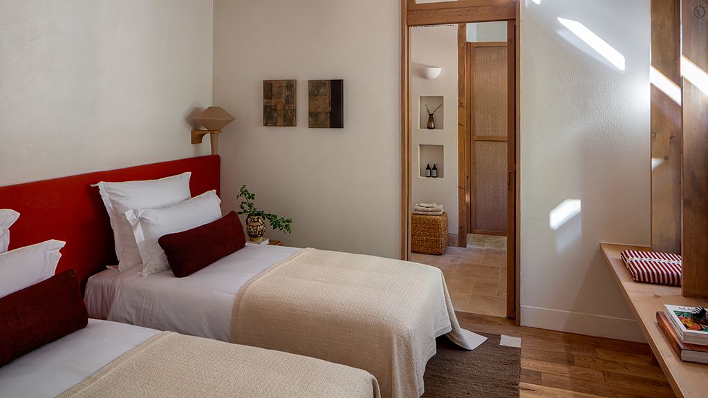 This stand alone cabana features a private terrace and front garden, two bedrooms with ensuite bathrooms, queen or twin bed, living room, fireplace, minibar, shower, coffee and tea setup, safe. The interiors are inspired by the light and airy essence of the Mediterranean.