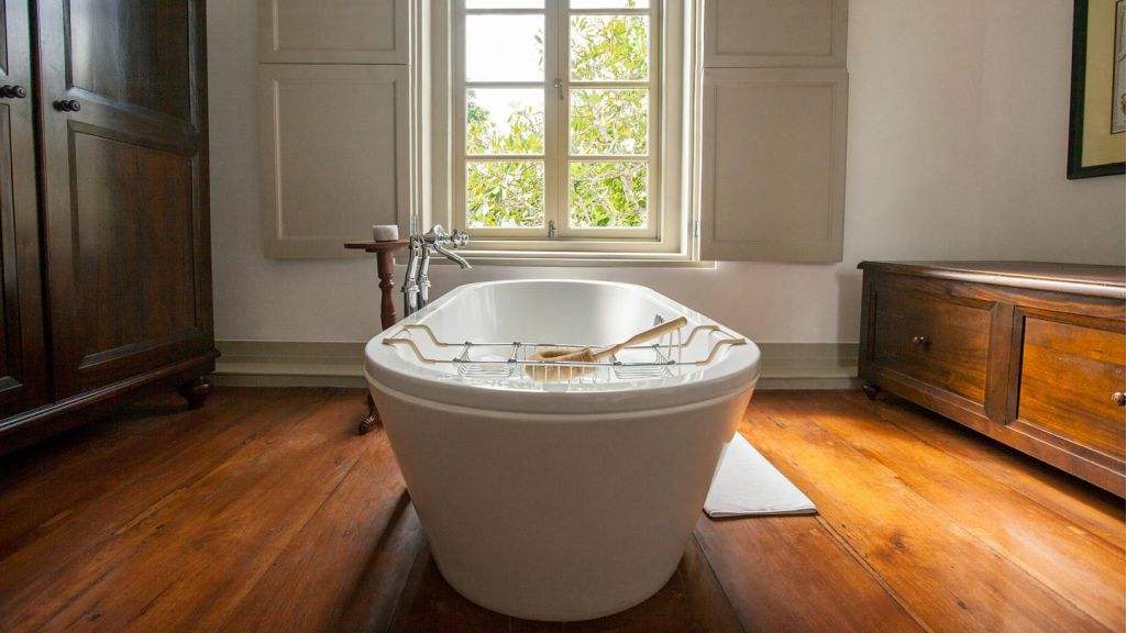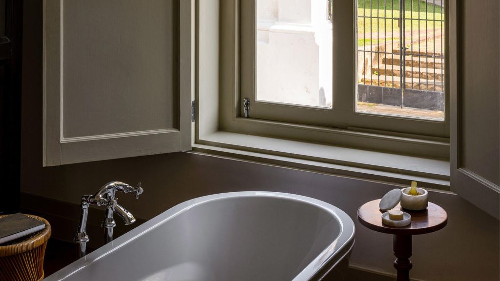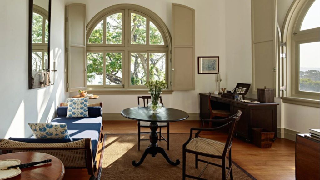 The 80-square-metre (861 square-feet) Suites enjoy views over the garden, or glimpses of fort ramparts and the harbour through the leaves of Para rubber trees