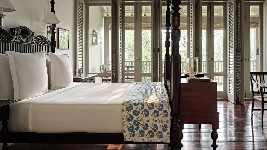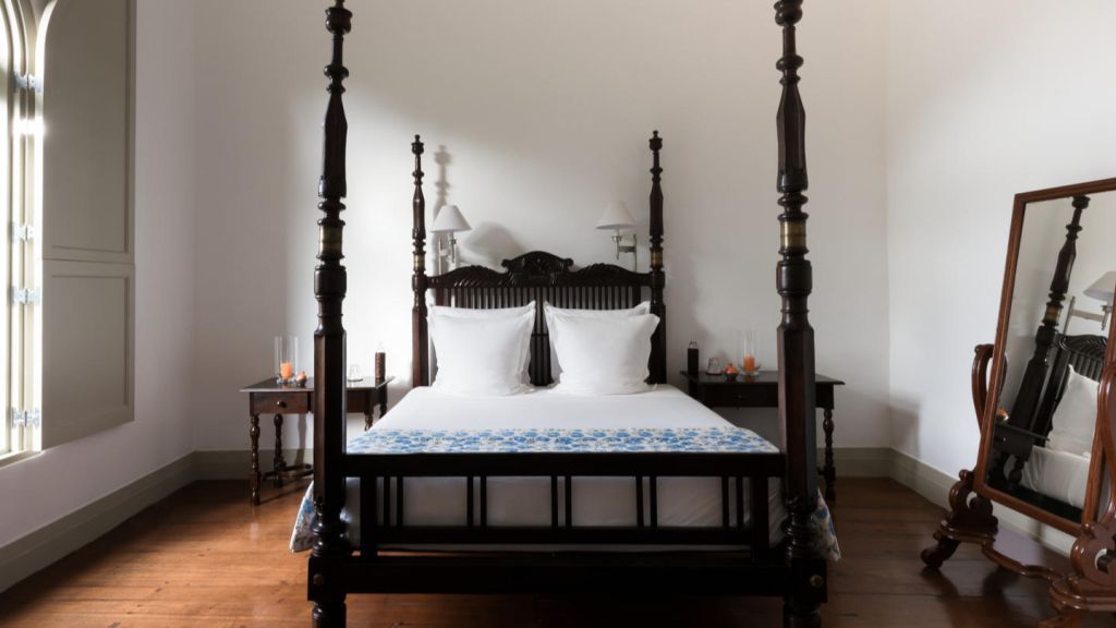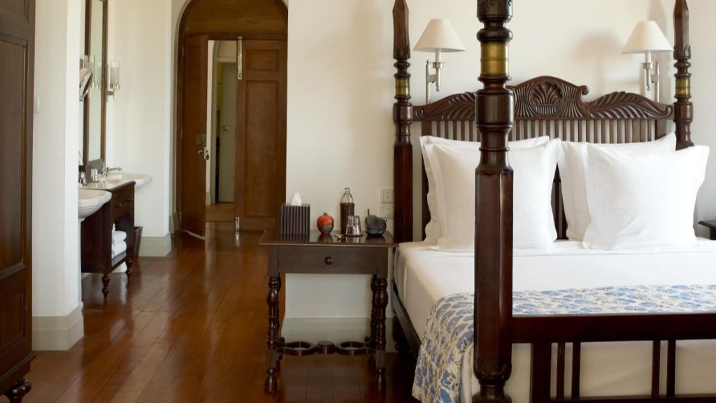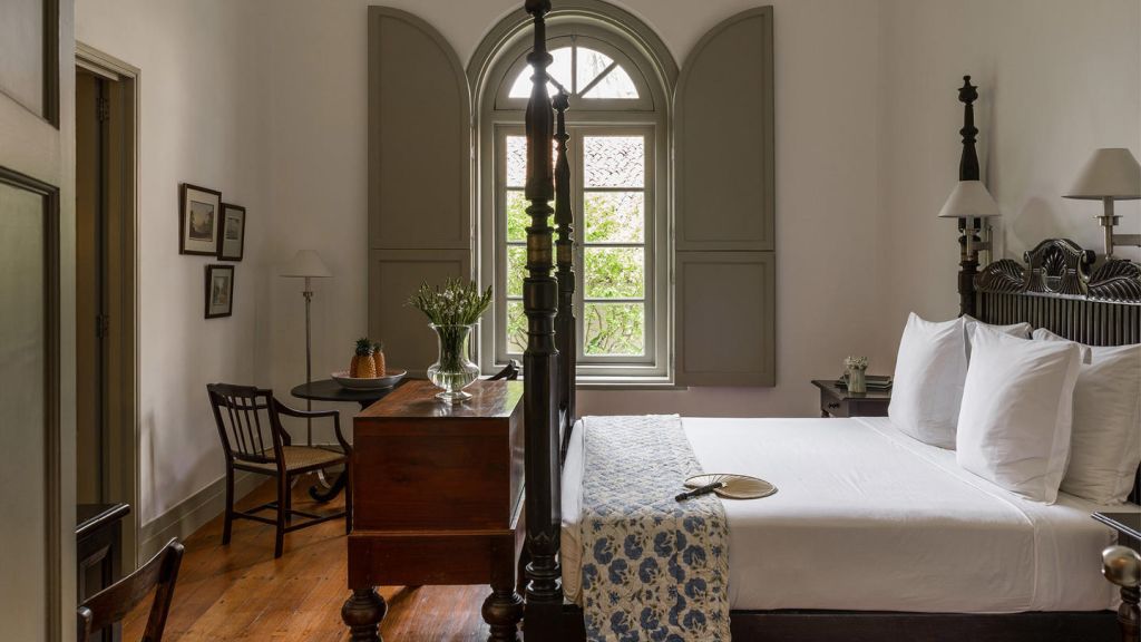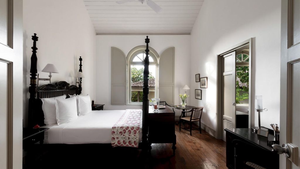 Set in Amangalla's Church Street wing, the 65-square-metre chambers enjoy views over the treetops towards the ramparts of Galle Fort
