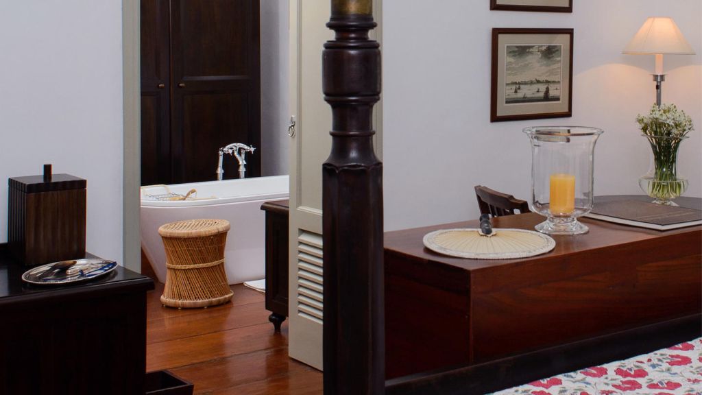 Set in Amangalla's Church Street wing, the 65-square-metre (699-square-foot) Chambers enjoy views over the treetops towards the ramparts of Galle Fort