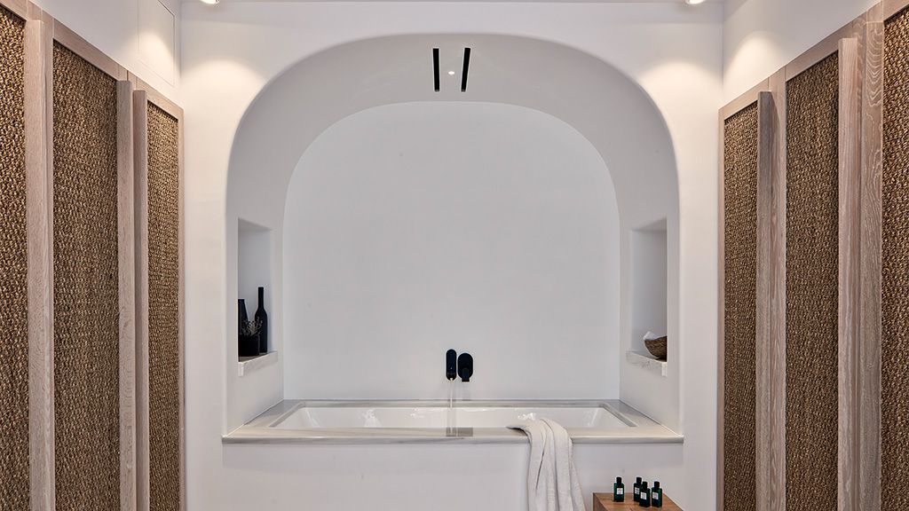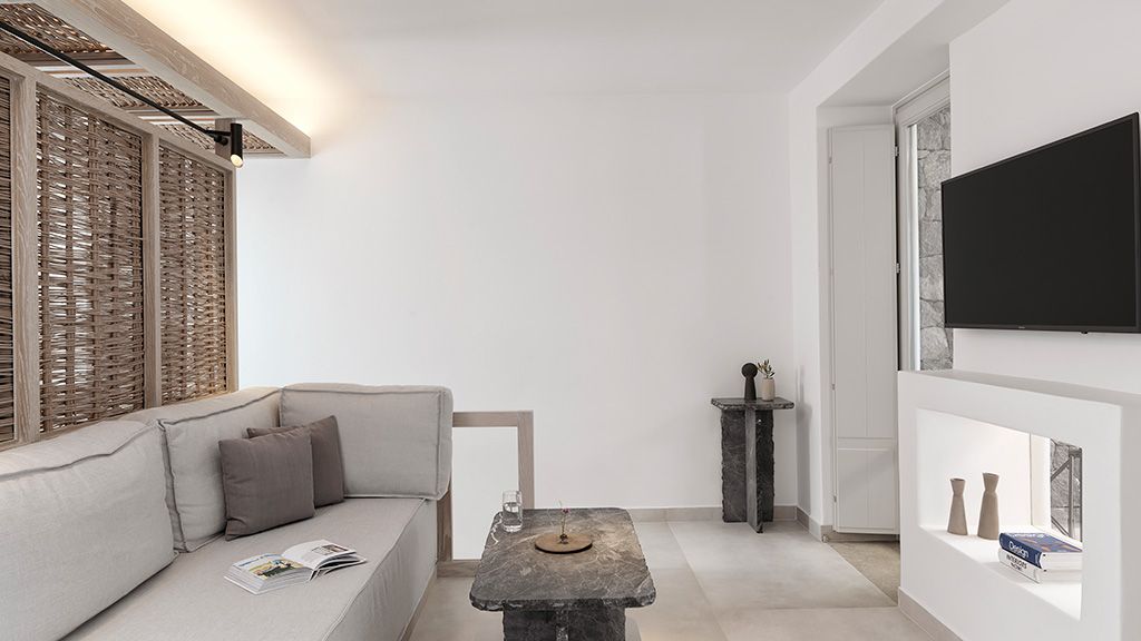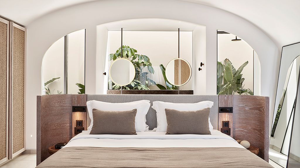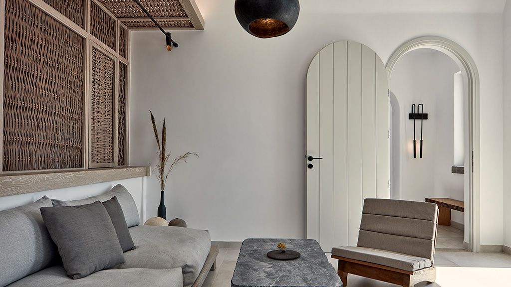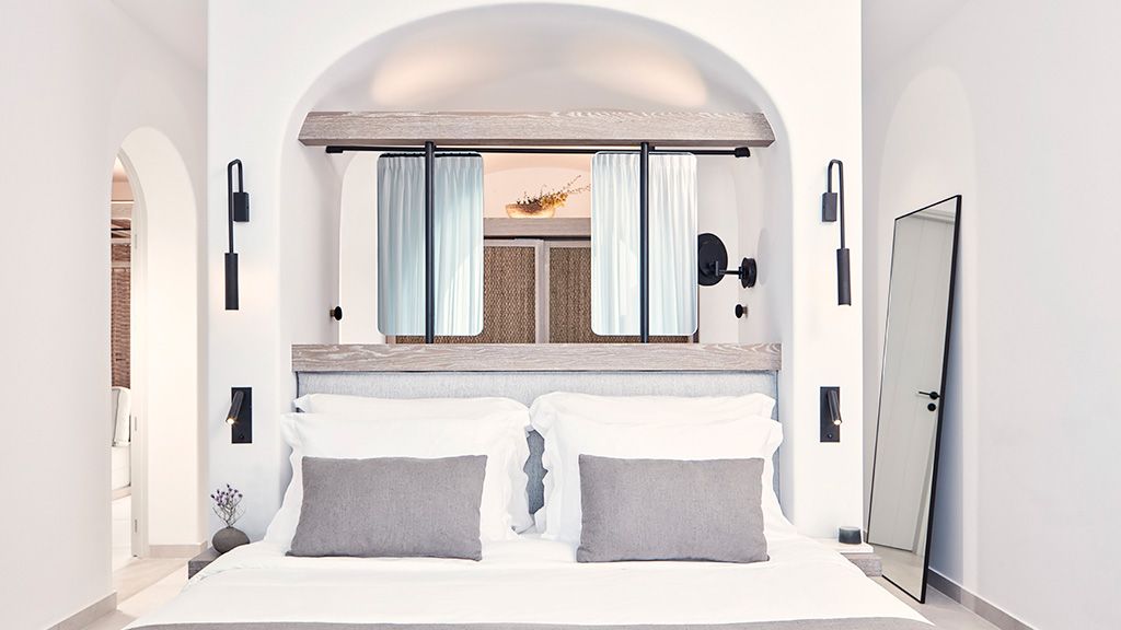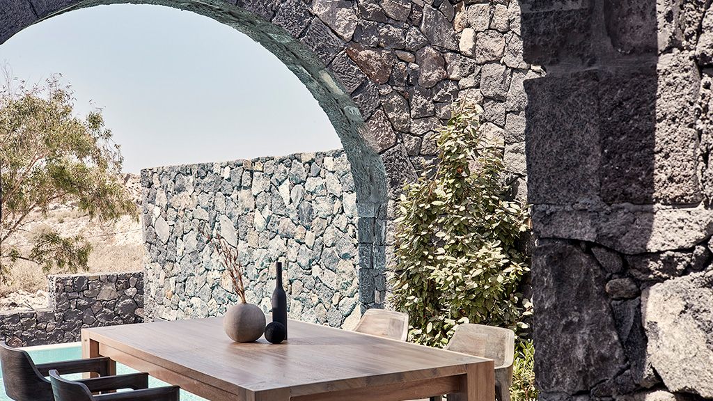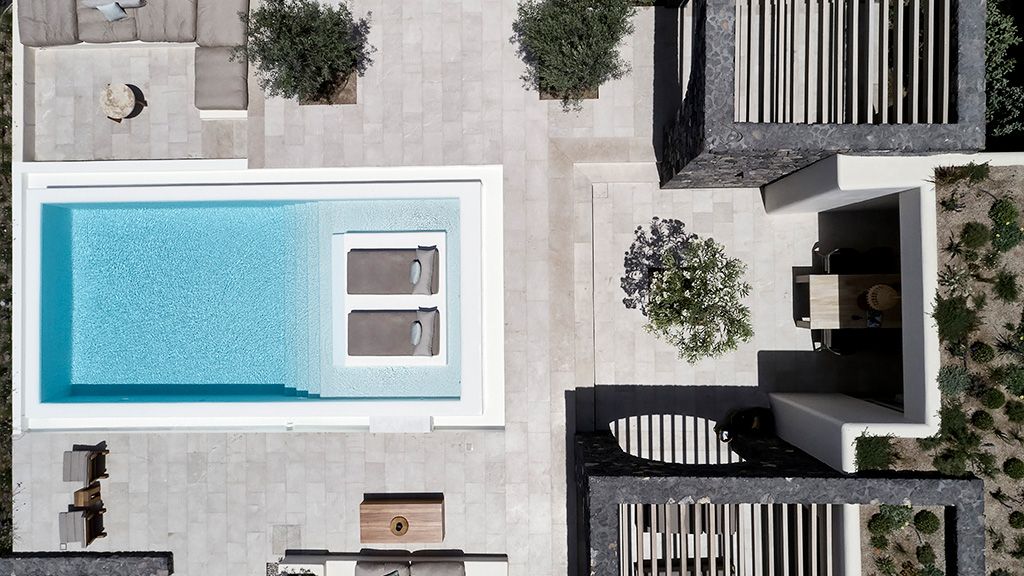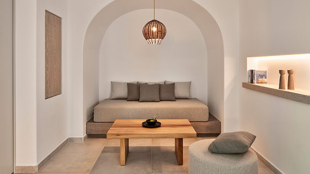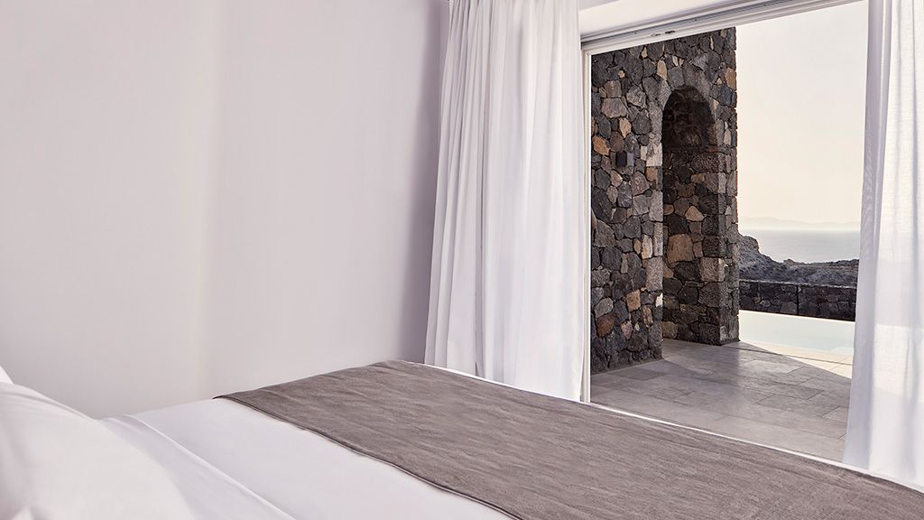 Located on a rugged cliffside above the picturesque fishing town of Ammoudi, Canaves Oia Epitome captivates with romantic island sunsets and enchanting plunge pools. Contemporary design mirrors the colors of the surrounding volcanic landscape, while cave-like interiors give a nod to the island's traditional architecture.