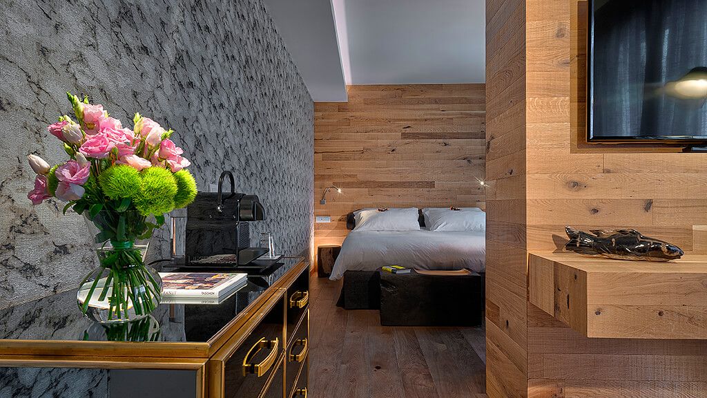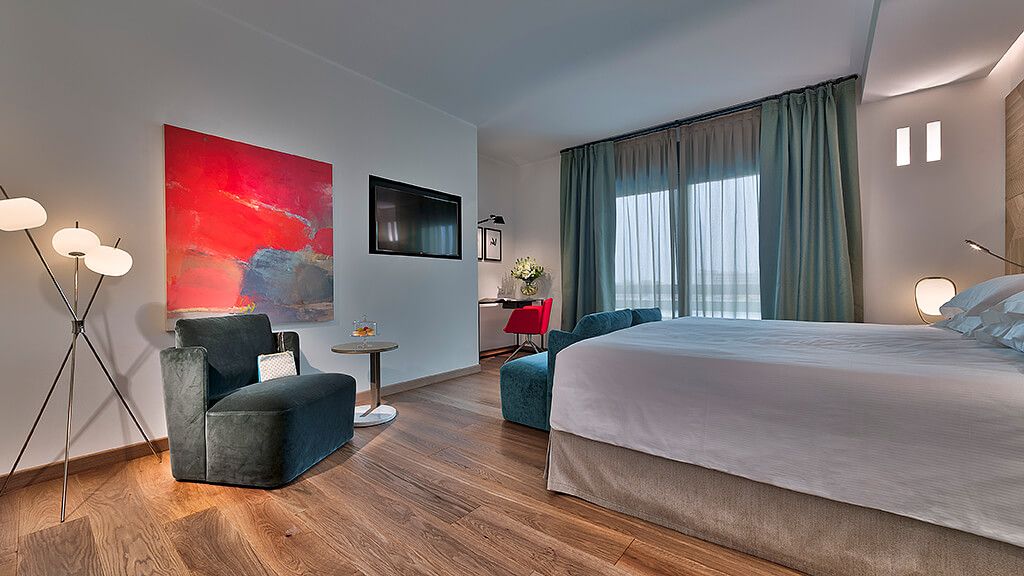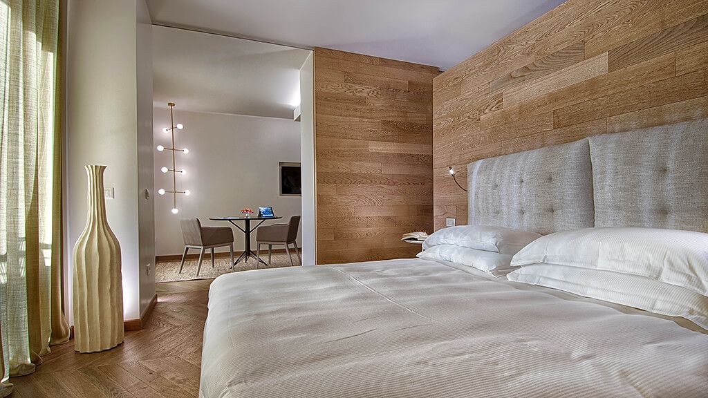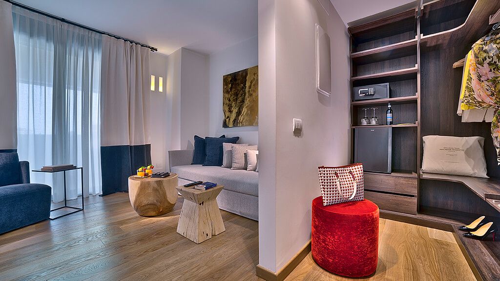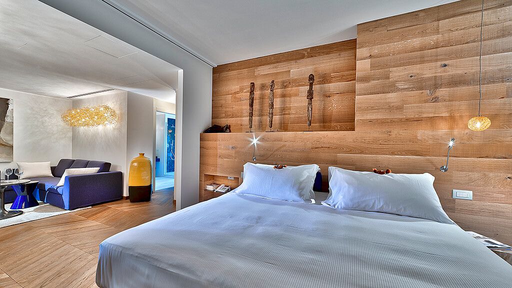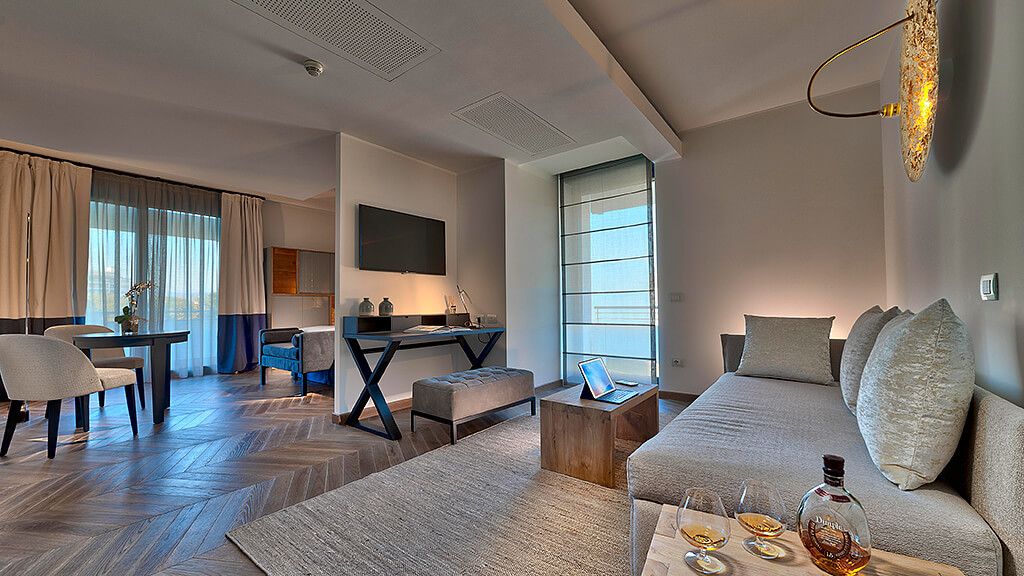 Vital Suite, for a holiday dedicated to comfort and good taste. Includes oak flooring, living room, Wi-Fi, large shower, balcony, AC, minibar and safe.