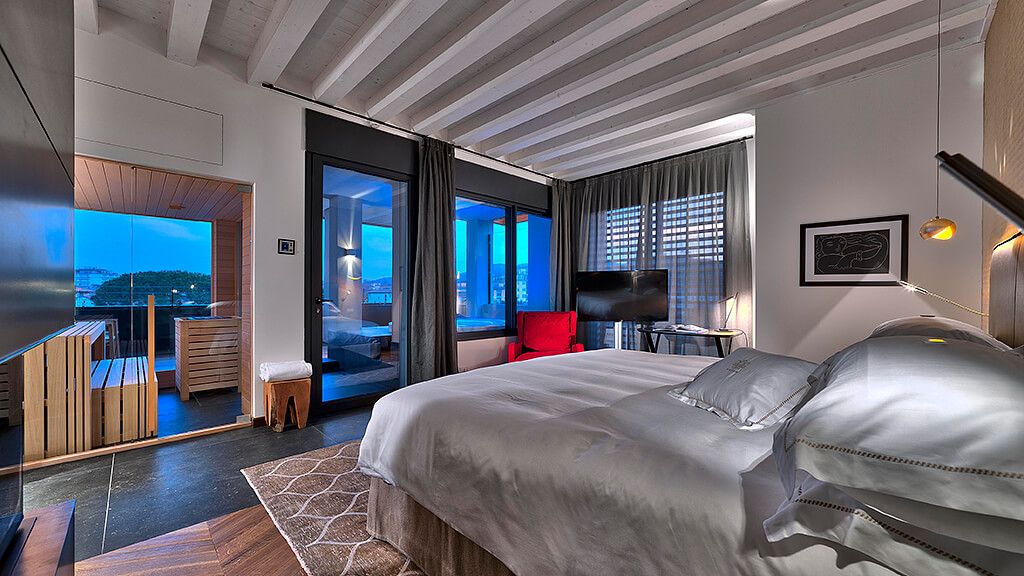 One of a kind, this suite is spacious and bright. The presence of a Finnish sauna in the room offers the pleasure of exclusive and intimate well-being. Includes oak flooring, living room, AC, two bathrooms with shower, Wi-Fi and Finnish sauna.