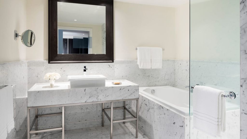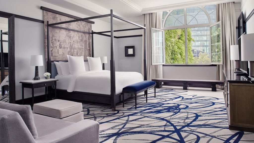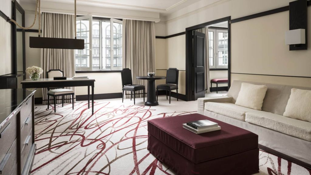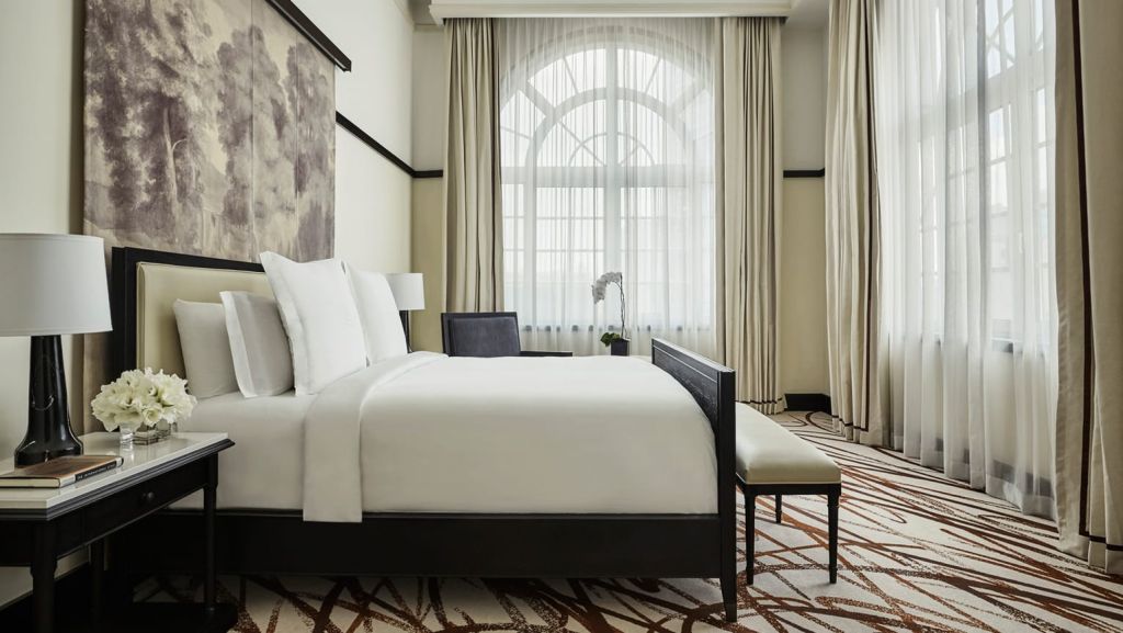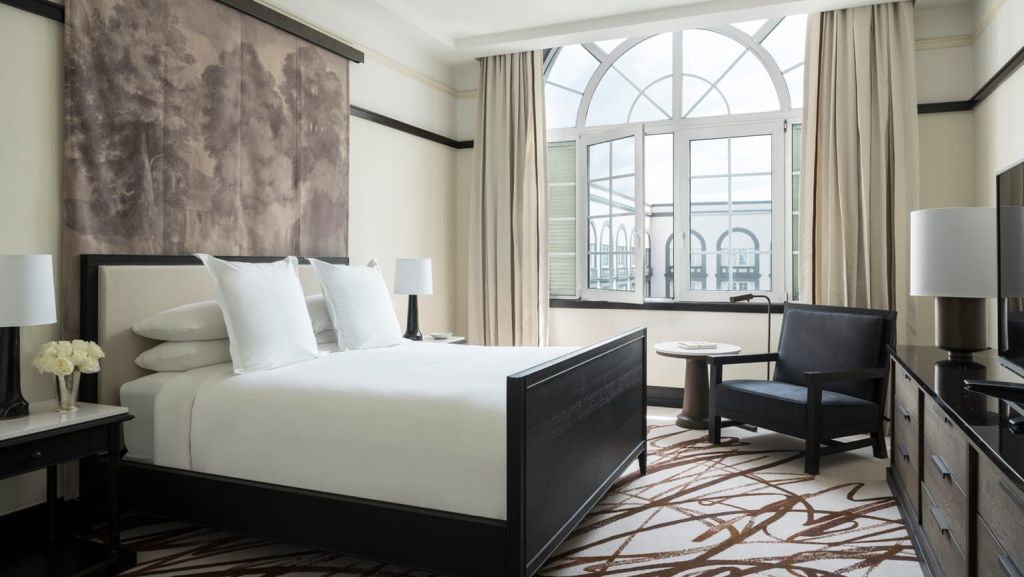 Suite with king bed, courtyard view, separate living room and is located on floors 3-8.