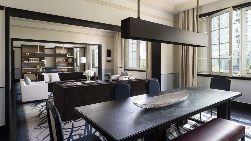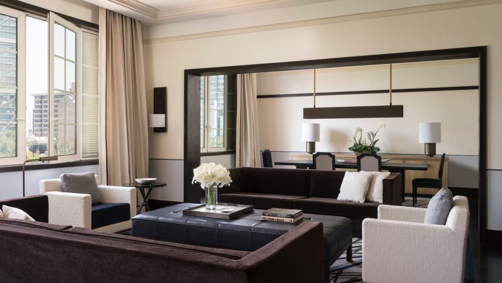 Suite with 1 King bed, separate living room, foyer, dining room for 4 and a view of the courtyard. Located on floors 4-8. Maximum occupancy: 3.