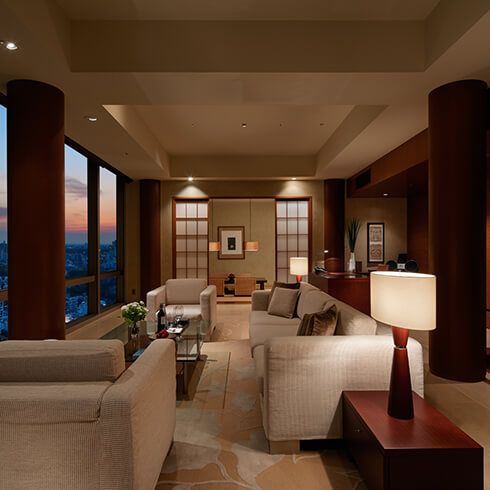 Experience an extraordinary stay in a 260 sq m (2,799 sq ft) top-floor suite featuring a 138 sq m (1,485 sq ft) private heated outdoor pool and a sundeck with sweeping views of Tokyo. Other features include an expansive living room, a dining room that seats eight, an indoor Japanese Zen garden, a kitchenette and a generous work area. The luxurious bedroom includes two king-sized beds and a master bathroom with a whirlpool tub and rain shower.
