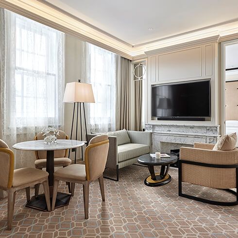 For an extra special stay, why not book our stunning two bedroom suite, located on the second floor of Great Scotland Yard, perfect when traveling with family and friends. The room has been decorated in a completely beautiful and unique design, unlike any other bedroom in the hotel, including bespoke artwork and chandeliers. It is the largest available suite, at 90 sqm. Unwind and put your feet up in the comfortable and spacious living room, host friends for dinner and drinks in the large dining area with a table that seats up to 6 people - either catered by our talented chefs or prepared in your own fully equipped kitchenette.